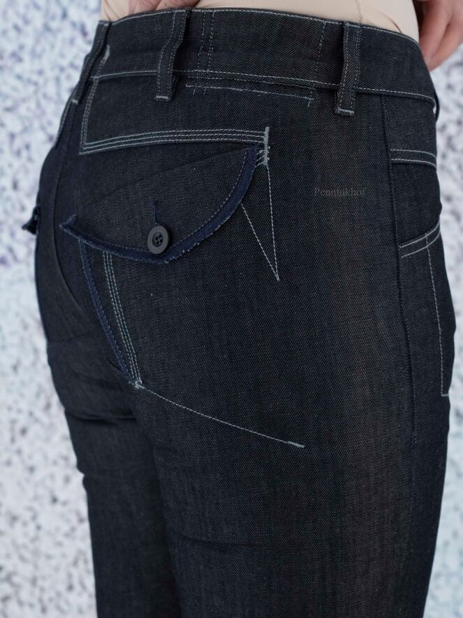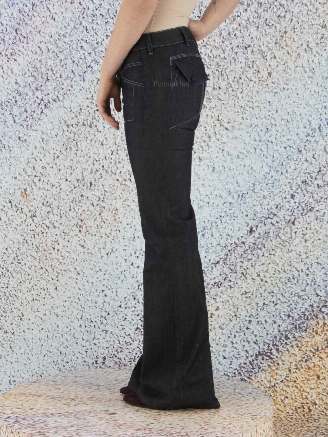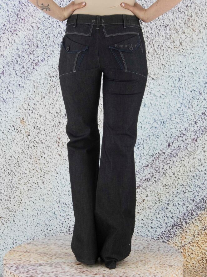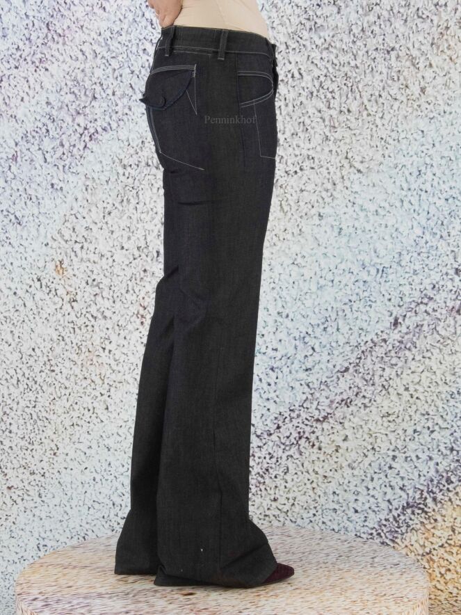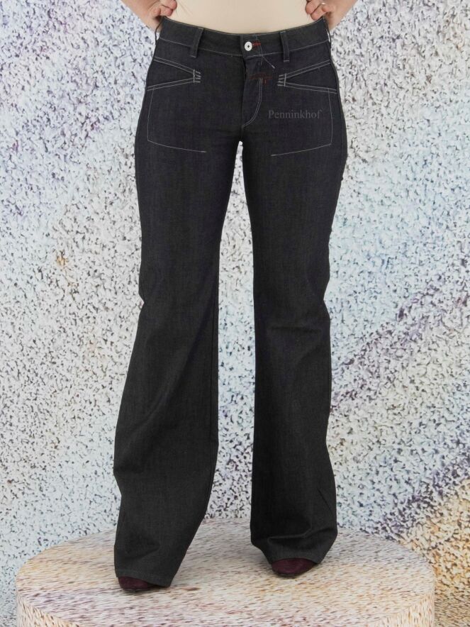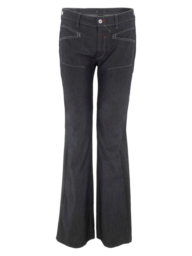 Een jeans van Girbaud in de kleur antraciet grijs met een blauwe gloed in de stof. De jeans is in een wijde flare model. Aan de achterkant hebben de klepjes van de zakken een jeansblauwe bies. Deze jeans mag op 30 graden worden gewassen.