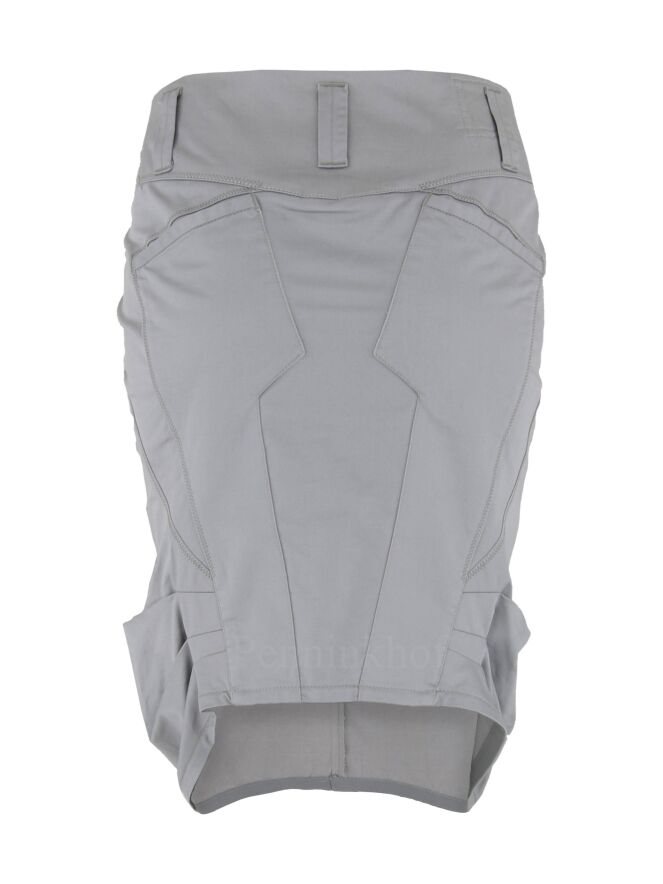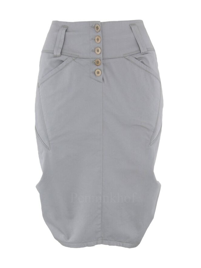 Een rok van Girbaud in de kleur grijs. De rok heeft verschillende diagonale stiknaden. Onder de taille zijn steekzakken. Deze rok mag op 30 graden worden gewassen.