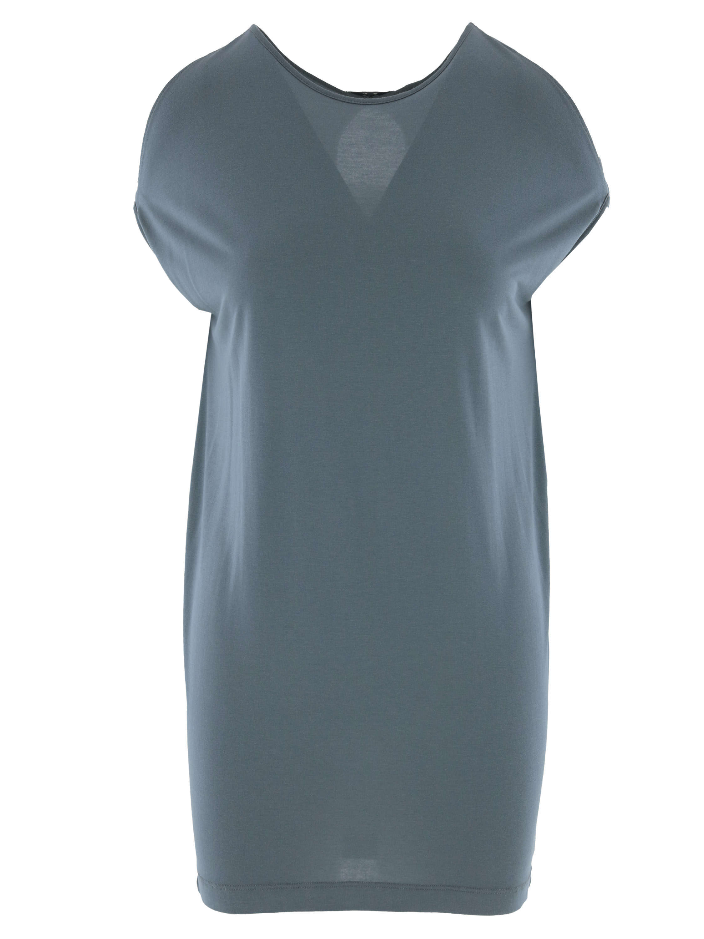 Een tuniek van High in een petrol grijs blauwe kleur. Het tuniek heeft een ronde hals en aan de achterzijde is onder de hals een opening in een druppel vorm. Dit tuniek mag op de hand worden gewassen.