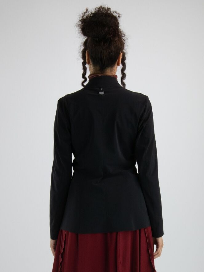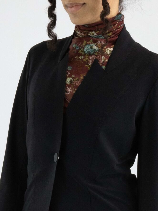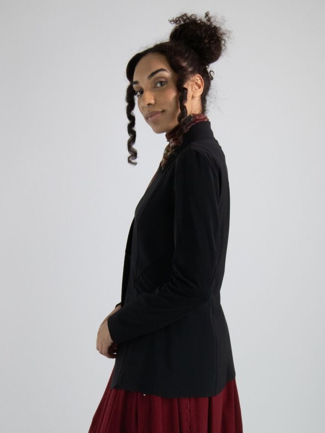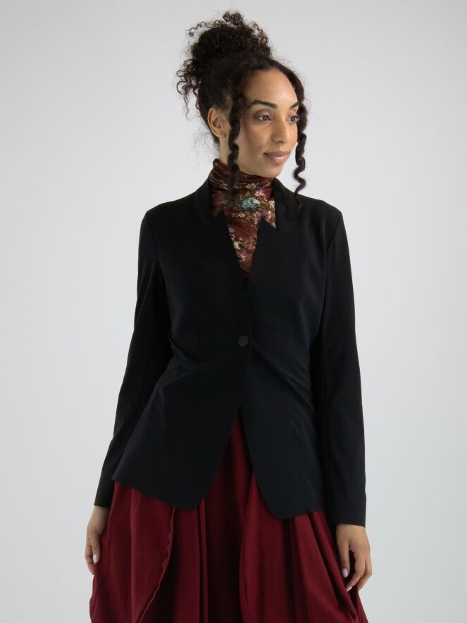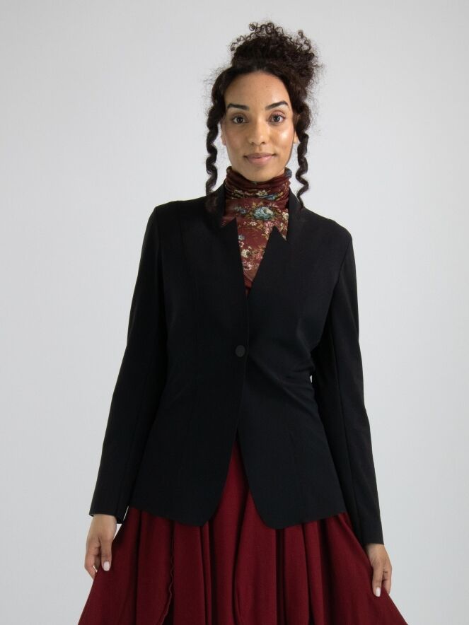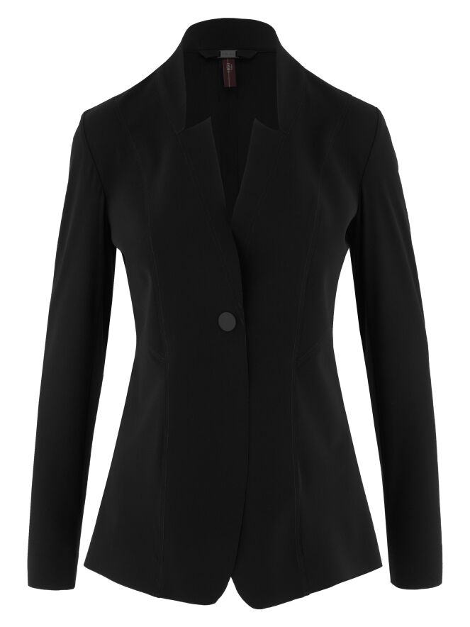 Een luxe blazer van High in de kleur zwart. De blazer is licht getailleerd, heeft een sluiting met één drukknoop en is ongevoerd. Deze blazer mag op de hand worden gewassen.