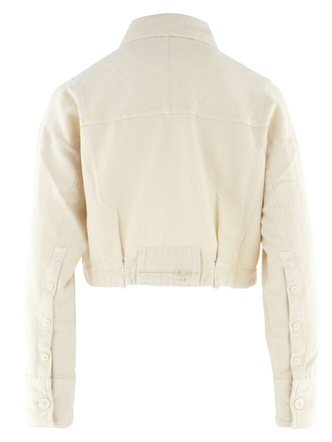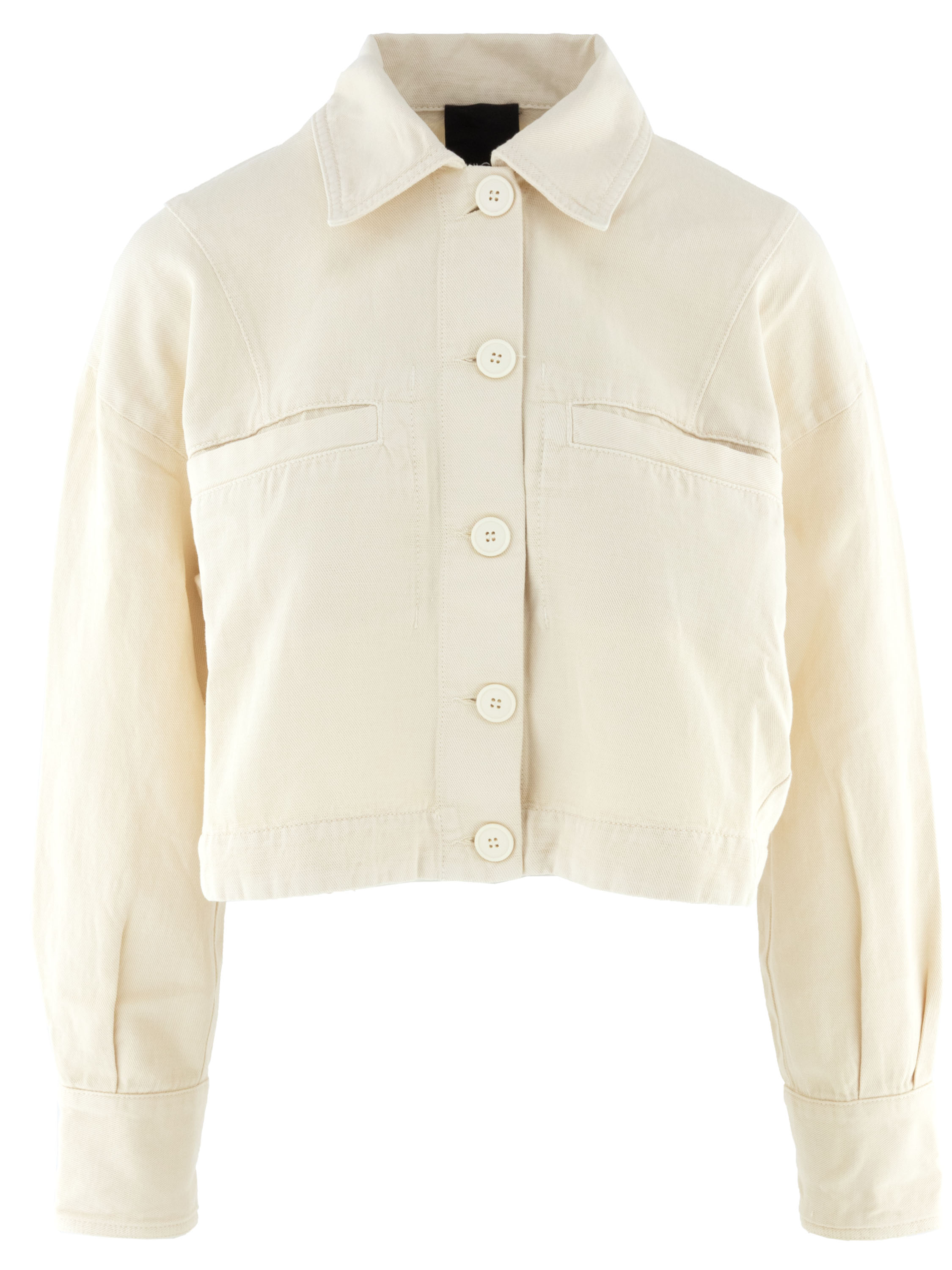 Korte blazer van High in een elegante beige tint. De blazer sluit met vijf knopen en heeft borstzakken die het ontwerp een klassiek accent geven. De mouwen zijn voorzien van een knoopsluiting over de lengte van de onderarm tot aan de uiteinden van de mouwen, wat zorgt voor een bijzonder en eigentijds detail. Deze blazer kan op 30 graden worden gewassen.