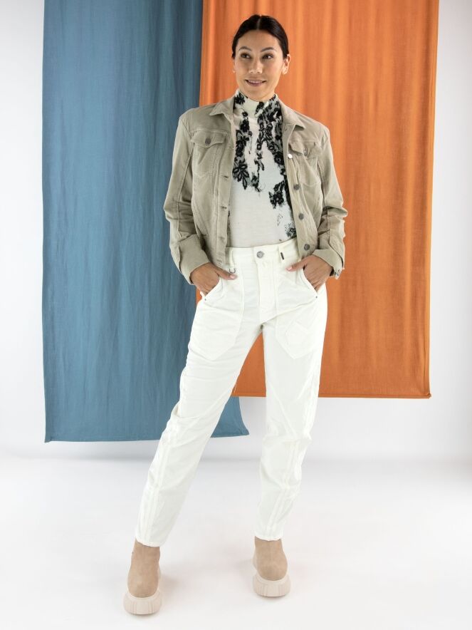 Een zachte veloursjack van High in een warme kit tint die comfort en elegantie perfect combineert. De blazer heeft een knoopsluiting en steekzakken op taillehoogte. Aan de zijkant zit een knoopsluiting waardoor je de blazer strakker kan aansluiten. Dankzij de was instructies bij 30 °C blijft het model langer mooi en behoudt het zijn vorm en zachtheid.