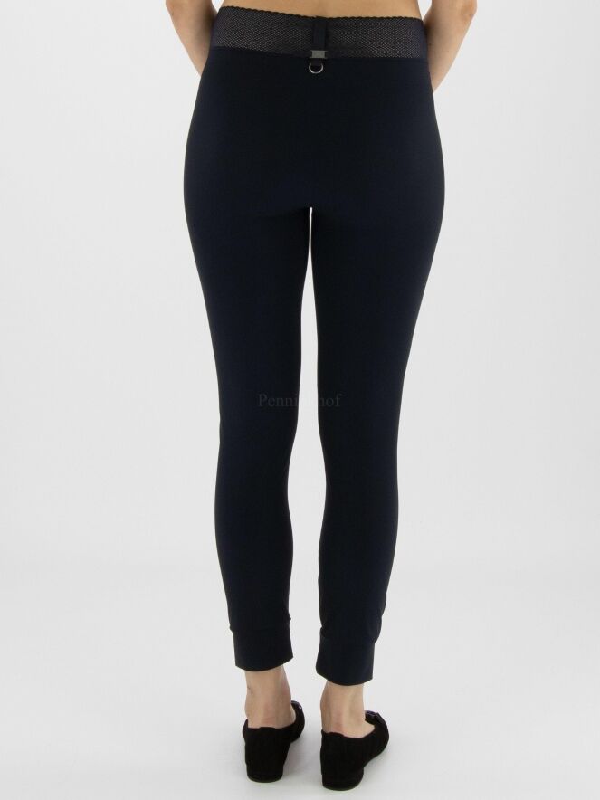 Een legging van High in de kleur marineblauw. In de taille is een brede elastieken band in een net structuur. Deze legging mag op 30 graden worden gewassen.