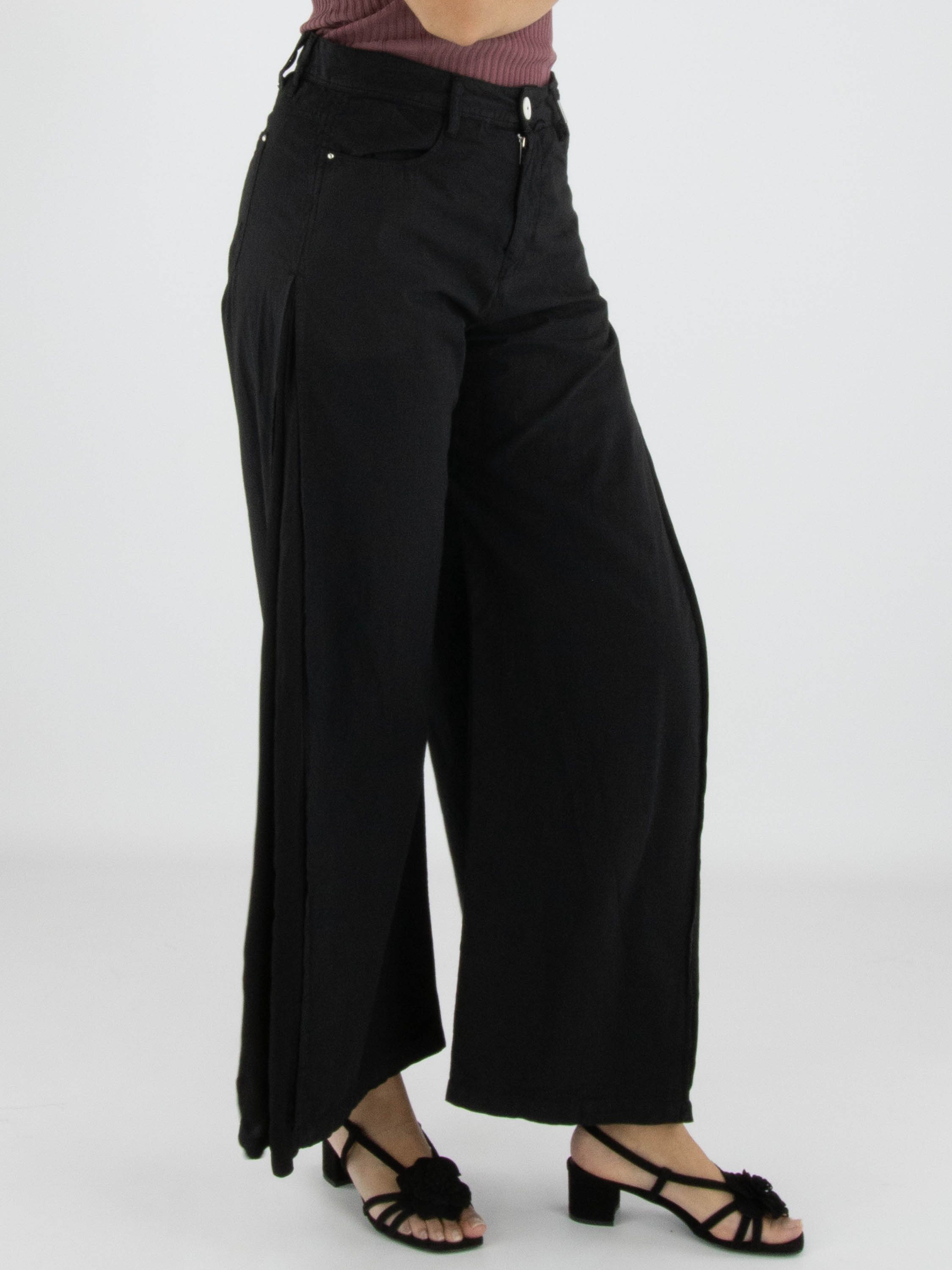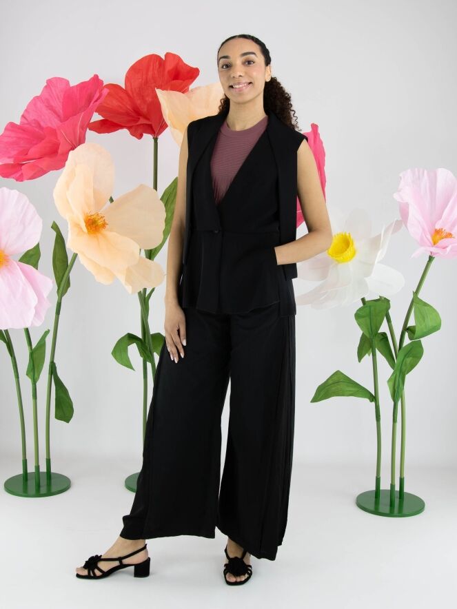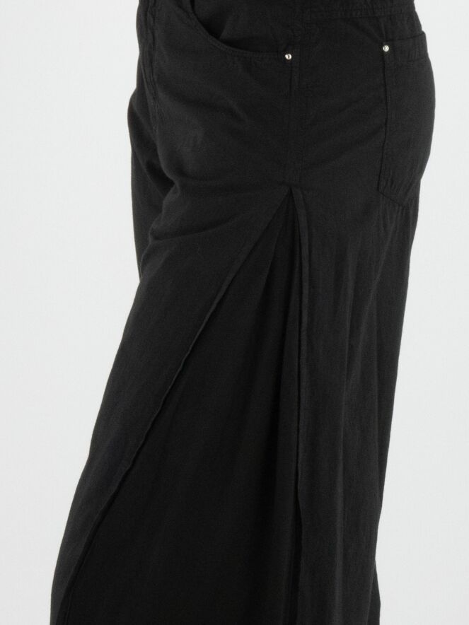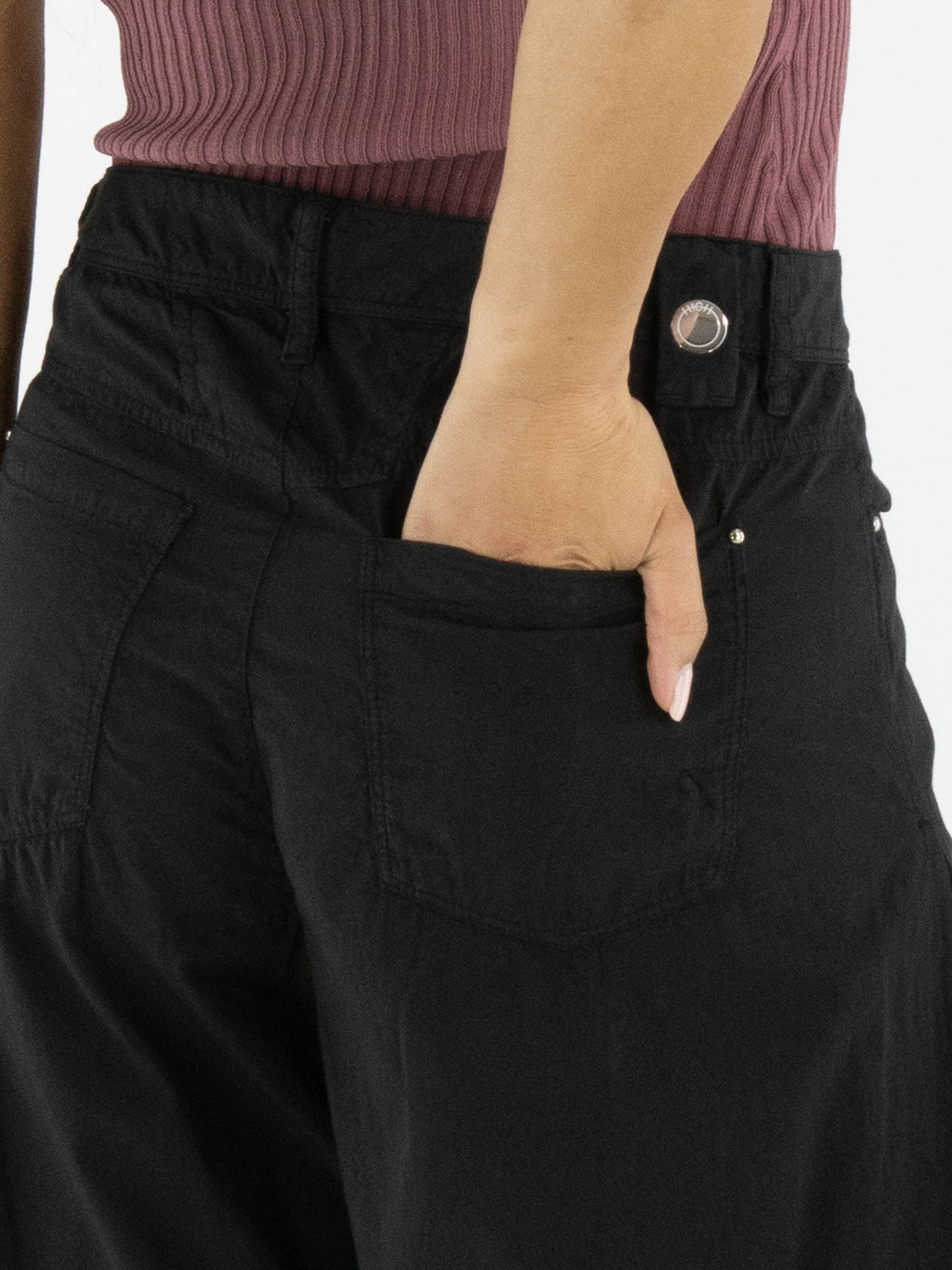 Broek van High in de kleur zwart. Langs de zijkanten is vanaf de heup tot aan de zoom een matte satijnen stof verwerkt, die tijdens het bewegen subtiel zichtbaar wordt en zorgt voor een verfijnd contrast. Deze exclusieve designerbroek kan met de hand worden gewassen.