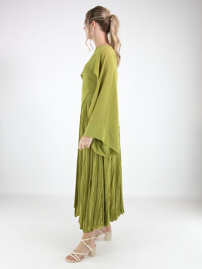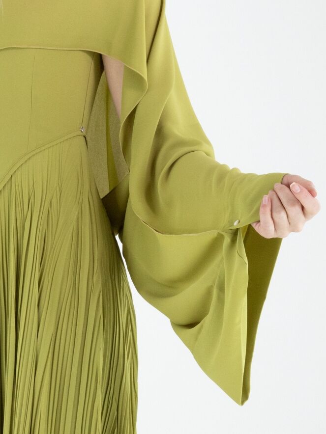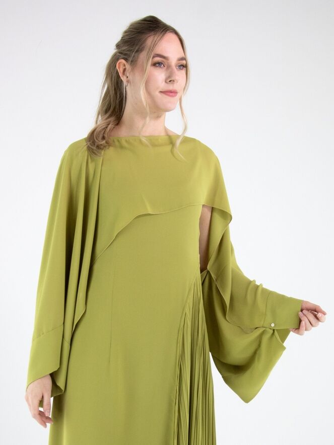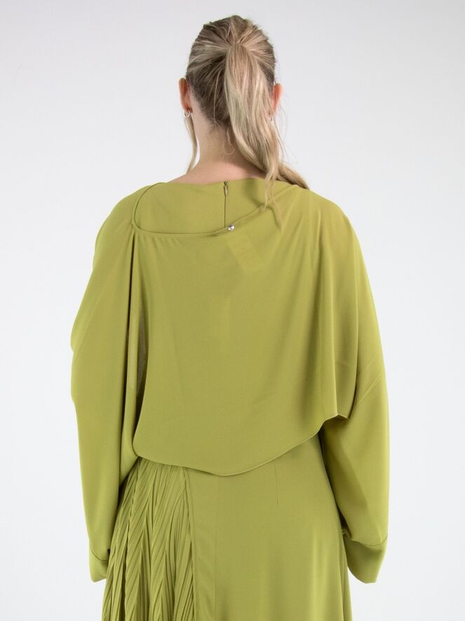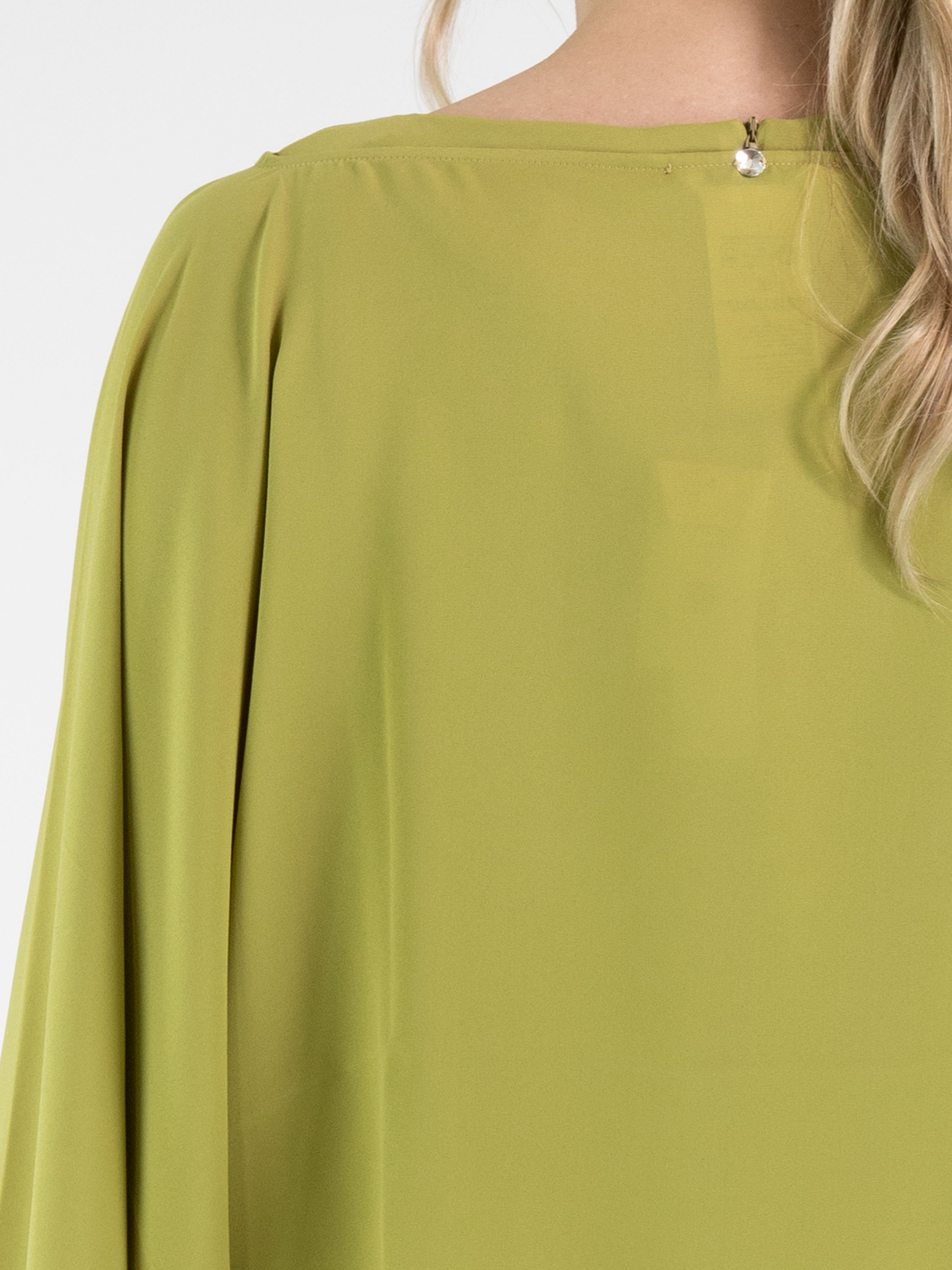 Bolero van High in een frisse pistachegroene tint. De mouwen zijn vanaf de schouder aan de bovenzijde opengewerkt, wat zorgt voor een luchtig en eigentijds detail. De bolero heeft een ruime ronde hals en kan met de hand worden gewassen.