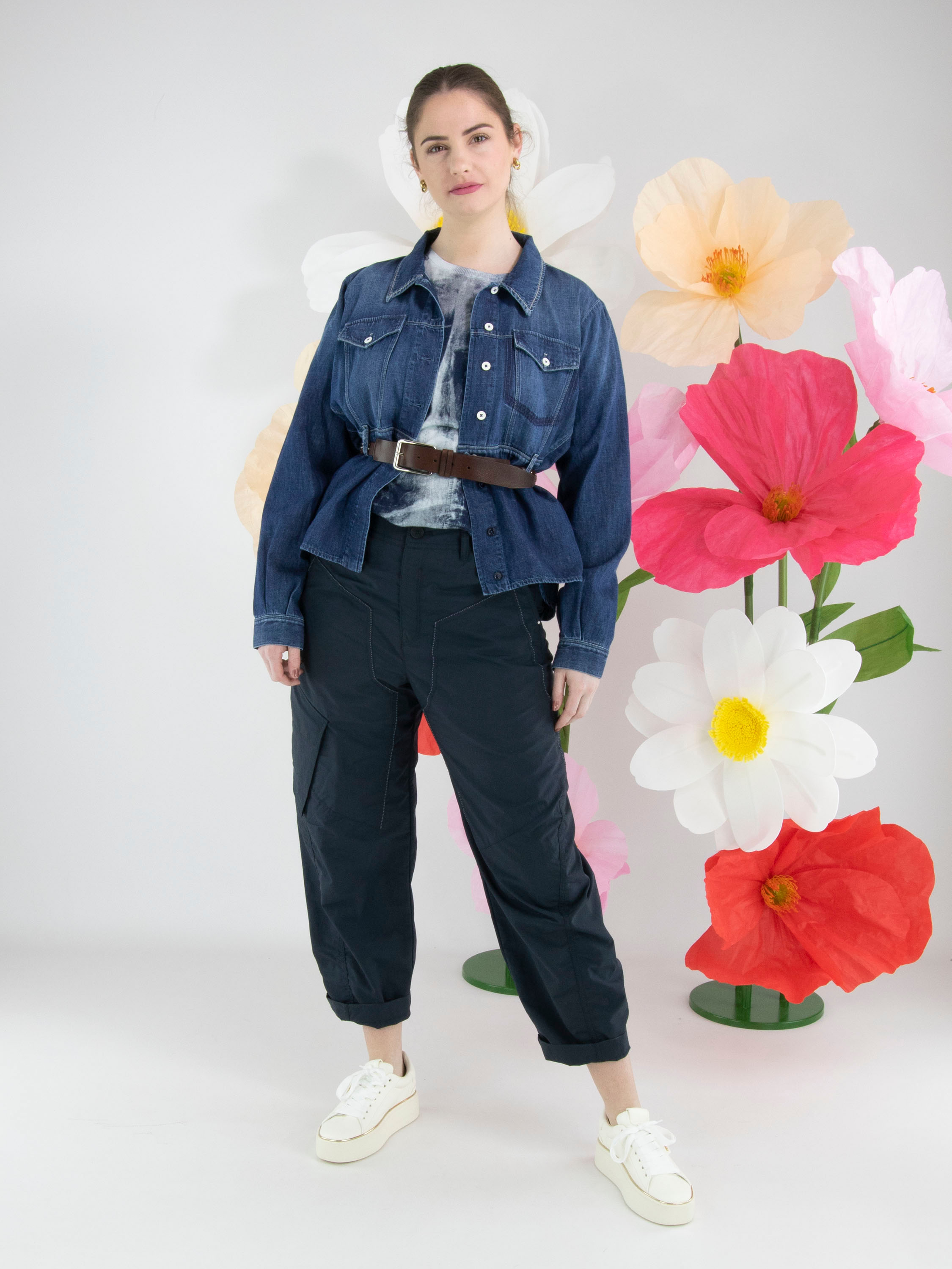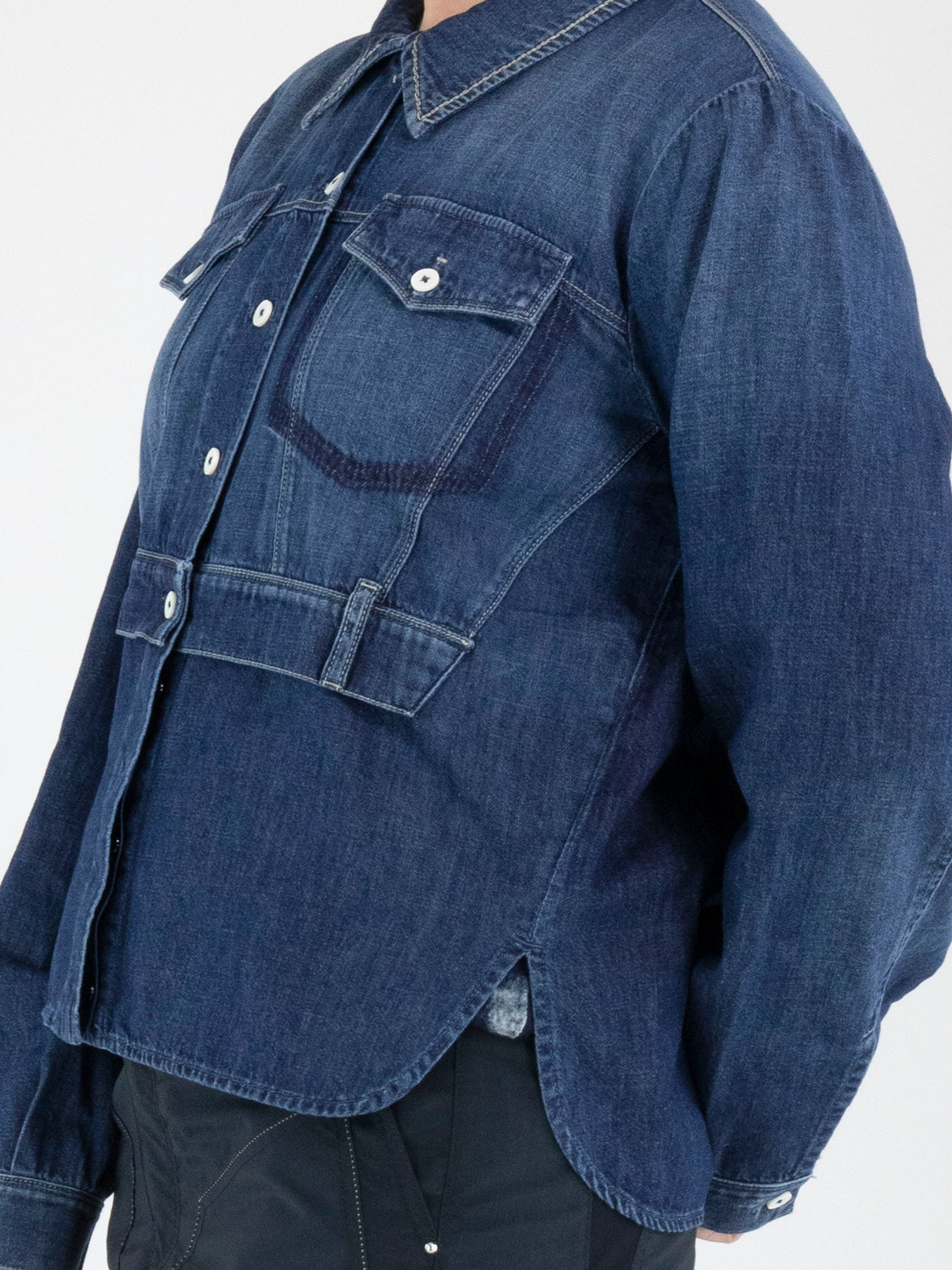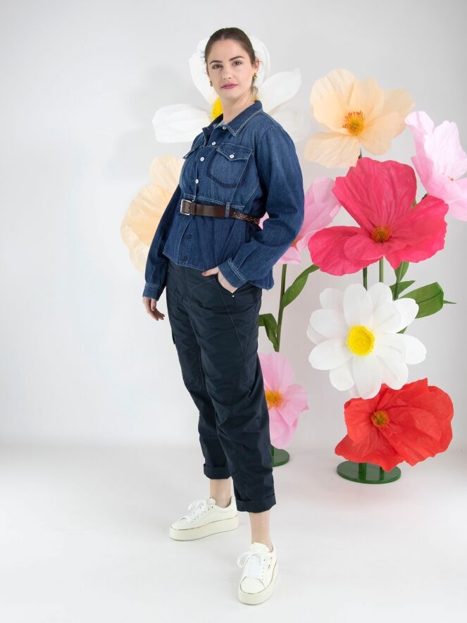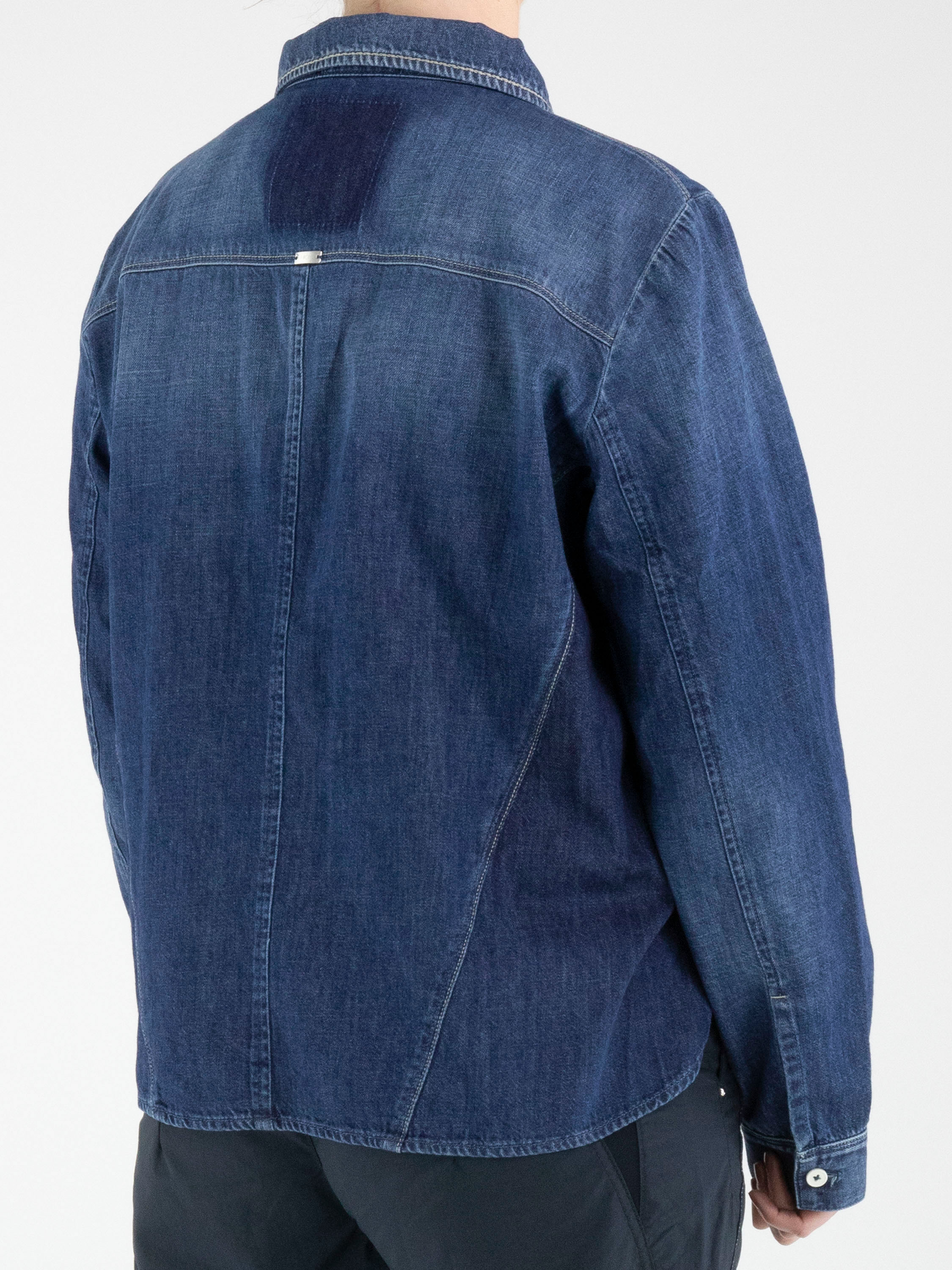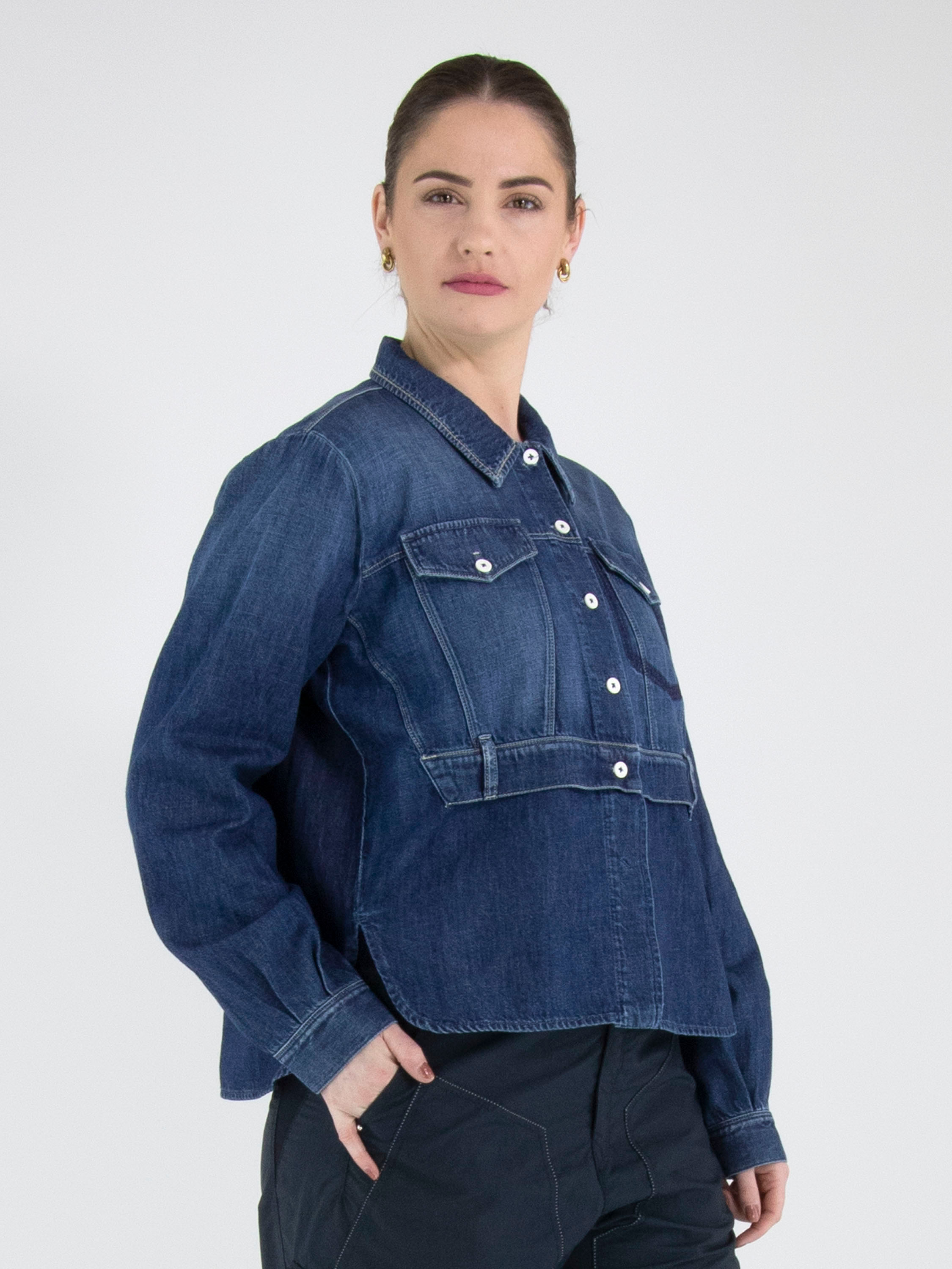 Een jeansblouse van High in een basic jeanskleur. Aan de voorkant zijn twee decoratieve borstzakken en ter hoogte van de taille een overslagstof met ceintuurlussen. Aan de onderkant is aan beide zijkanten een kort splitje. Deze blouse mag op 30 graden worden gewassen.