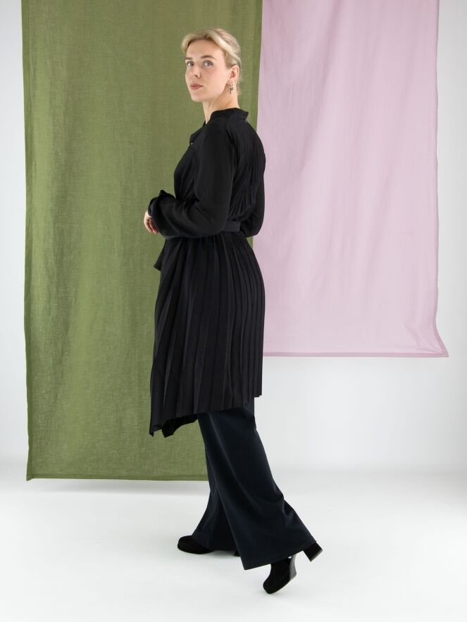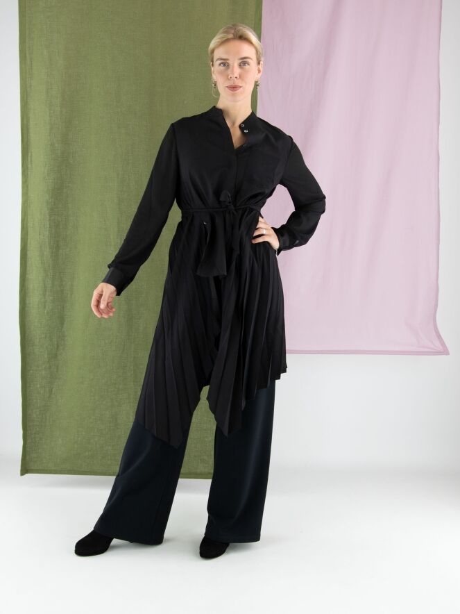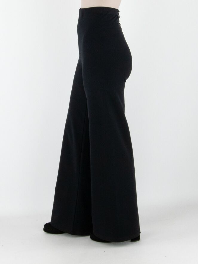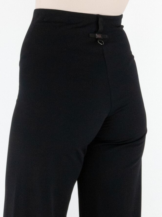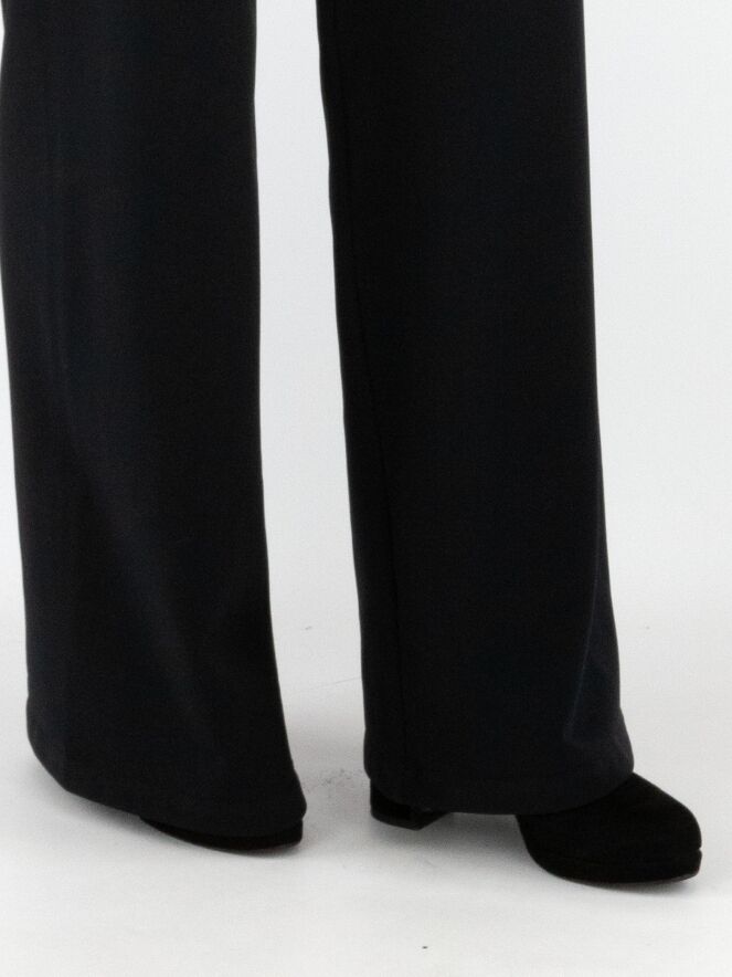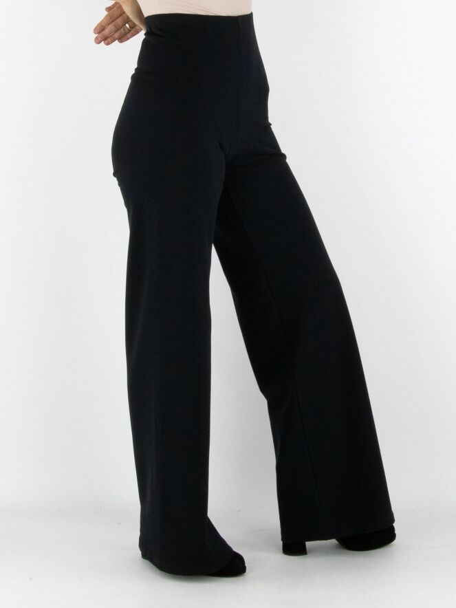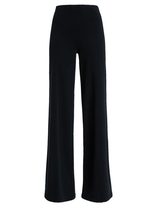 Een broek van High in de kleur zwart. In de taille zit een elastische band. De broek is recht gesneden en mag op 30 graden worden gewassen.