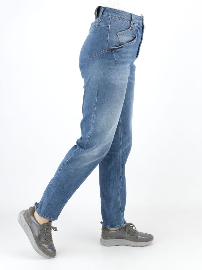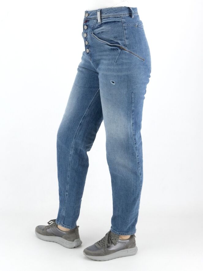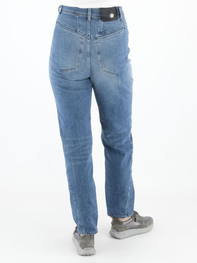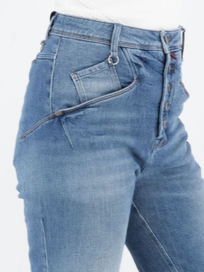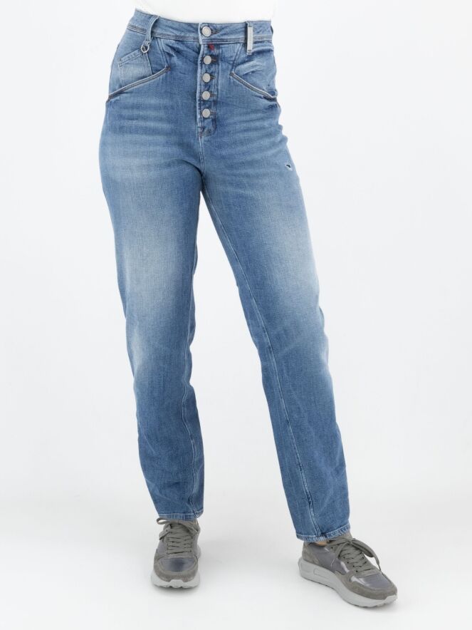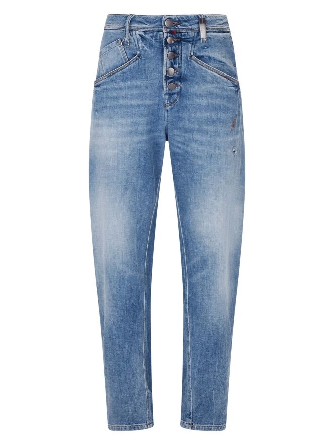 Een ruime gewassen jeans van High in een basic jeanskleur. De jeans is in een 5-pocketmodel met een knoopsluiting. Deze jeans mag op 30 graden worden gewassen.