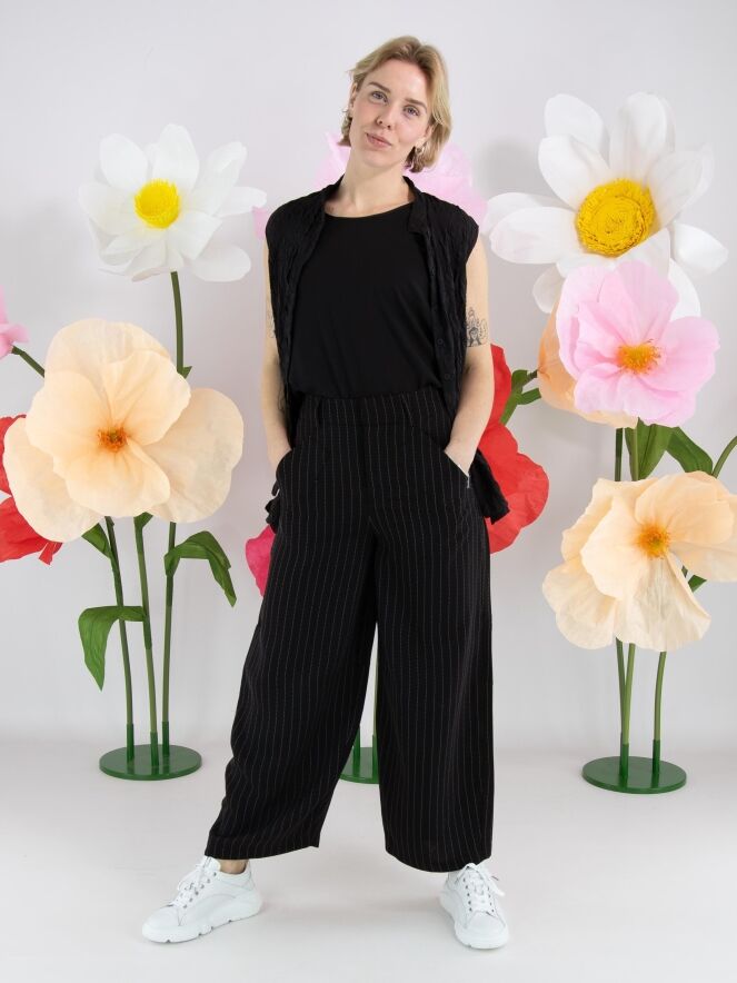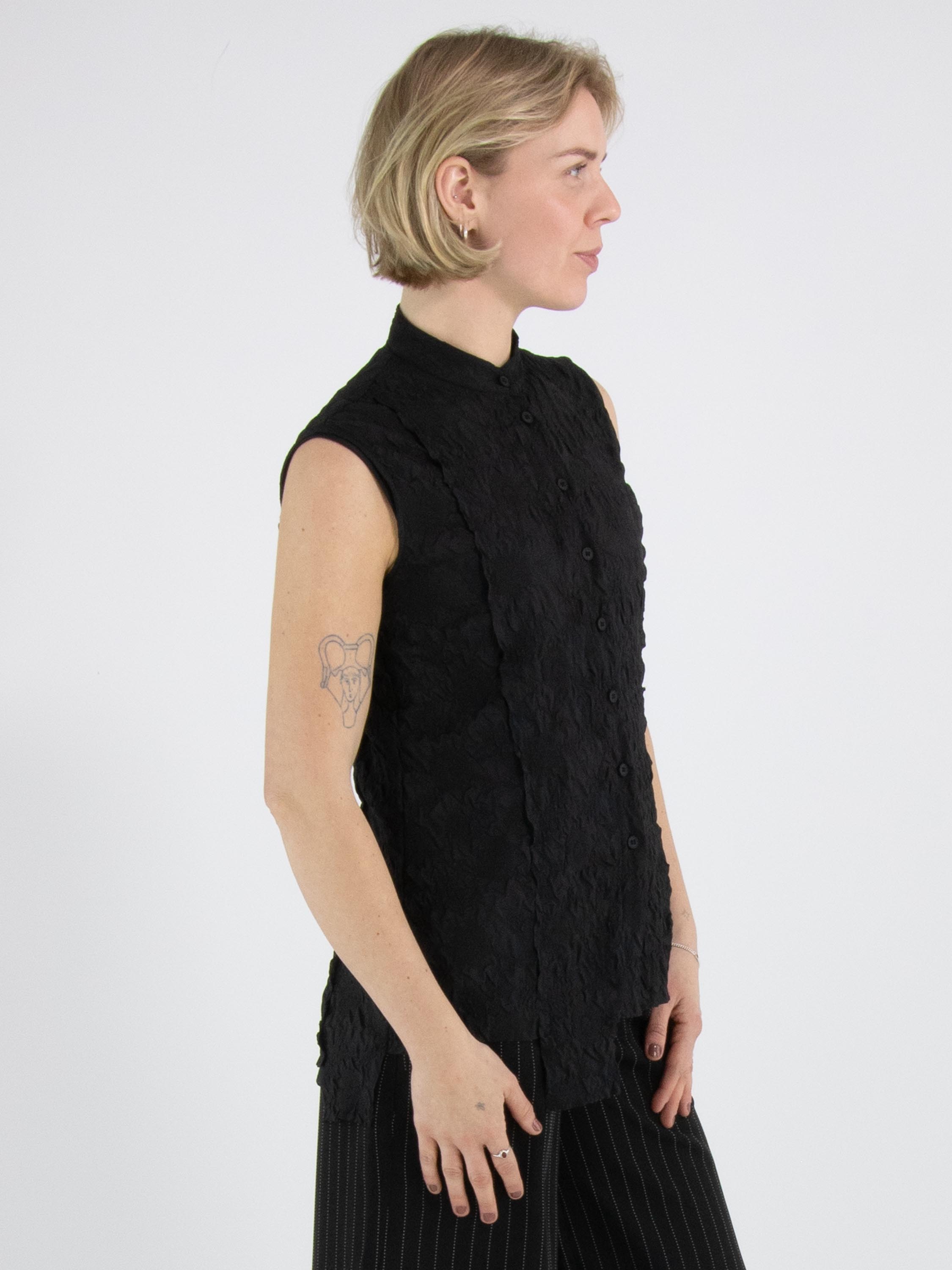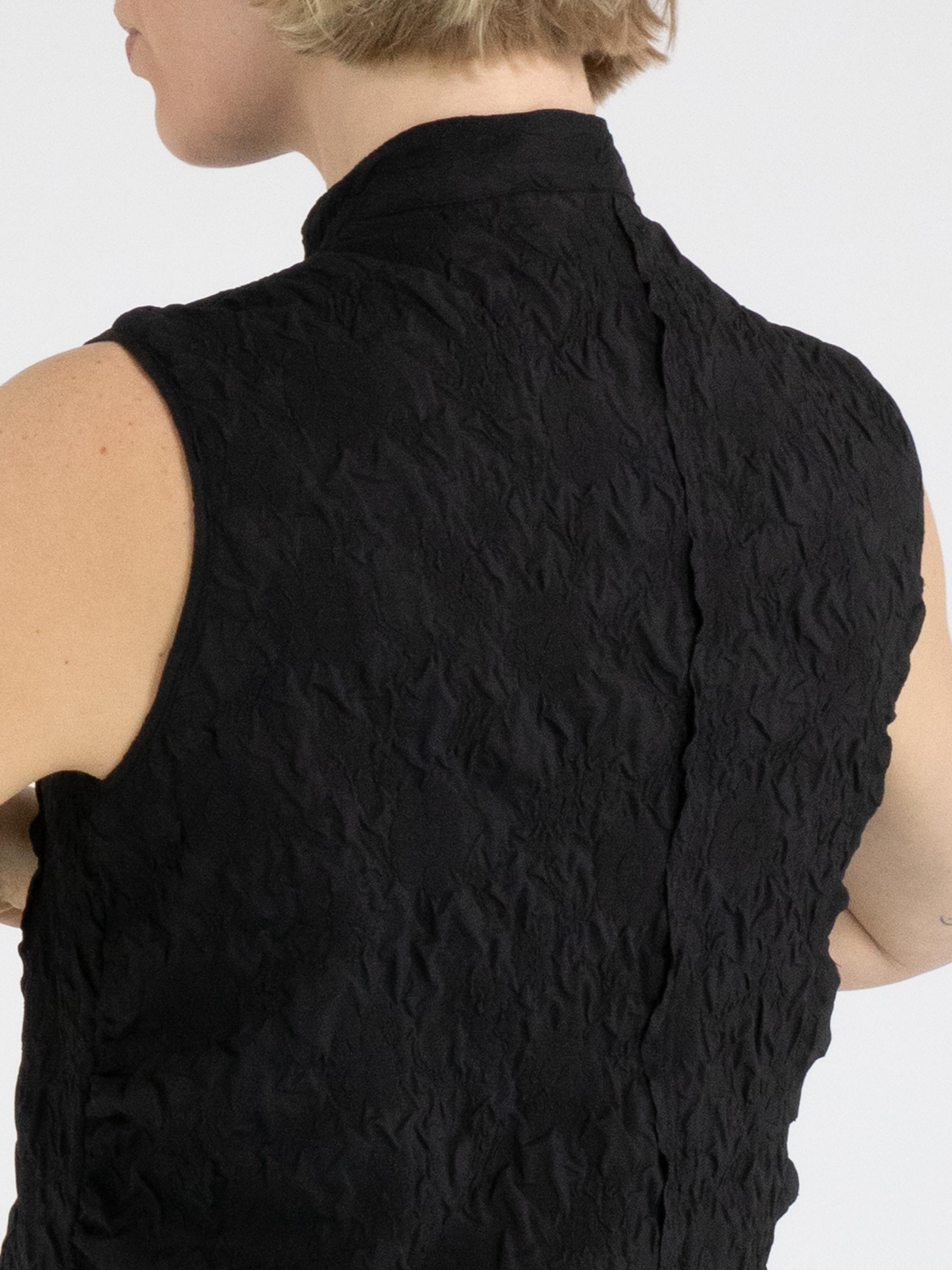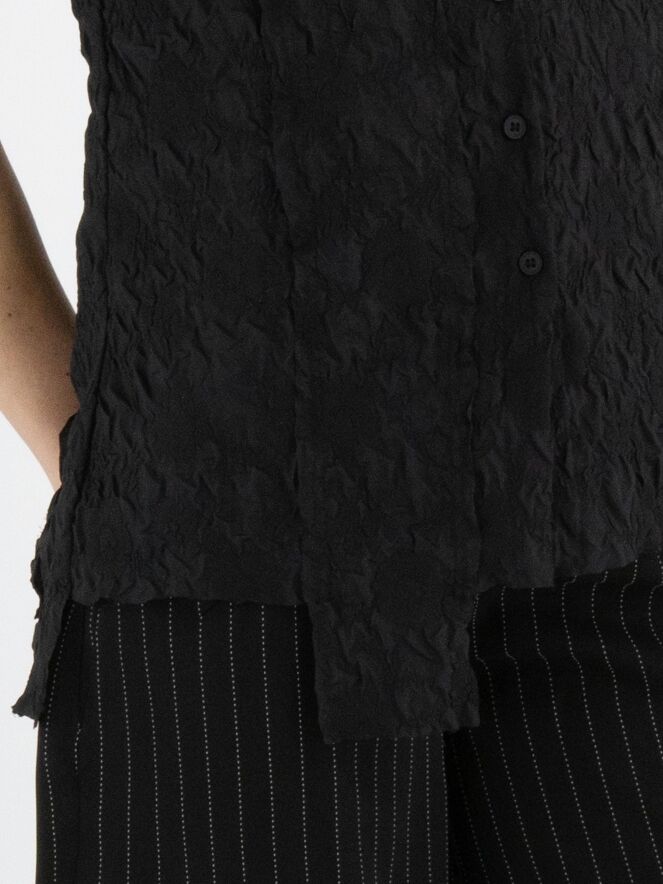 Een gesmokte hes van High Lab in de kleur zwart. Het hes heeft een knoopsluiting en aan de achterkant is in het midden een omgekeerde stiknaad. Dit hes mag op de hand worden gewassen.