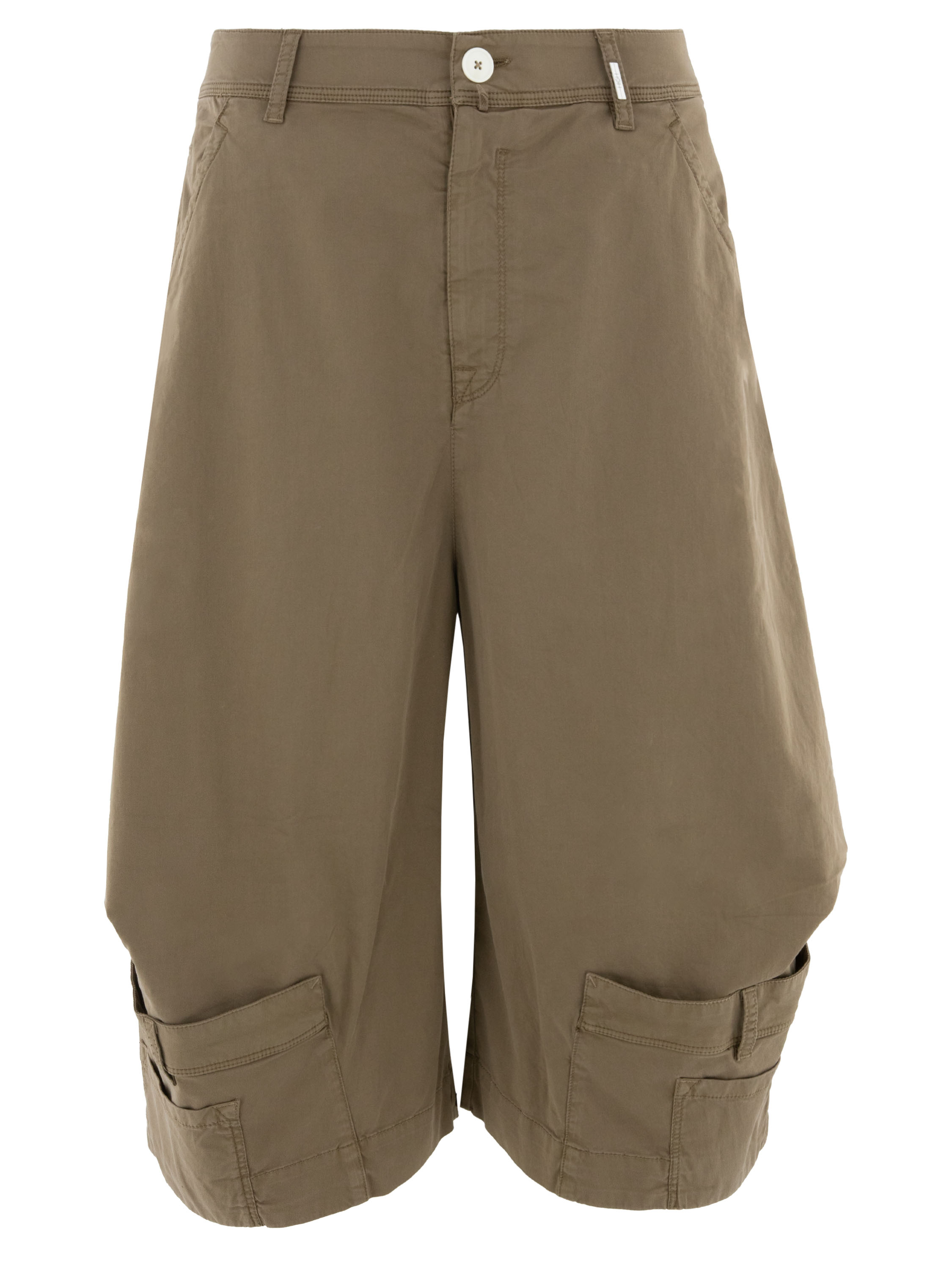 Capribroek van High in een warme bruine tint. Aan de onderzijde van de pijpen is een speels designdetail verwerkt dat de indruk wekt van een omgekeerde broek met zakken. Dit geeft het model een verrassend en eigentijds karakter. Deze broek kan op 30 graden worden gewassen.