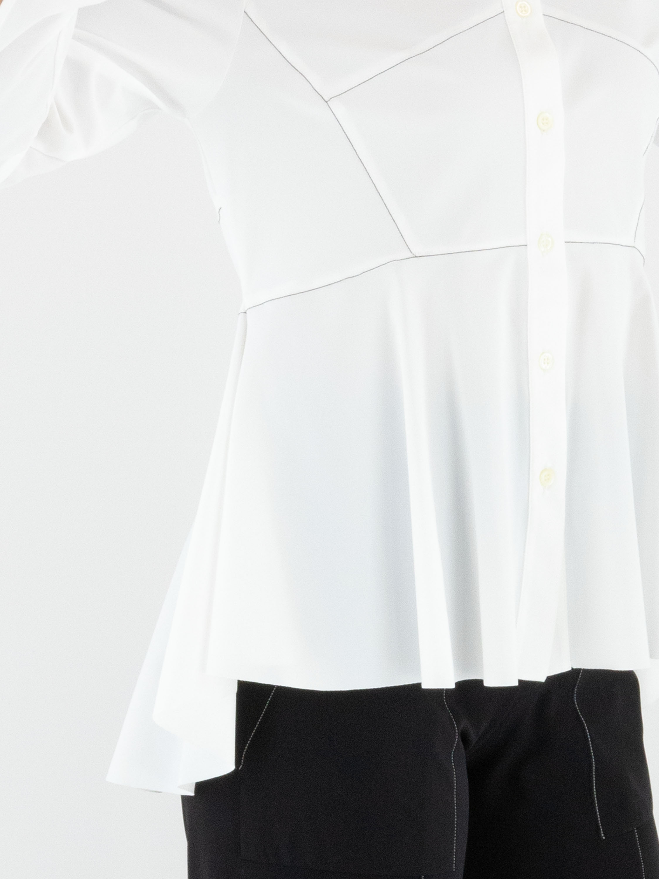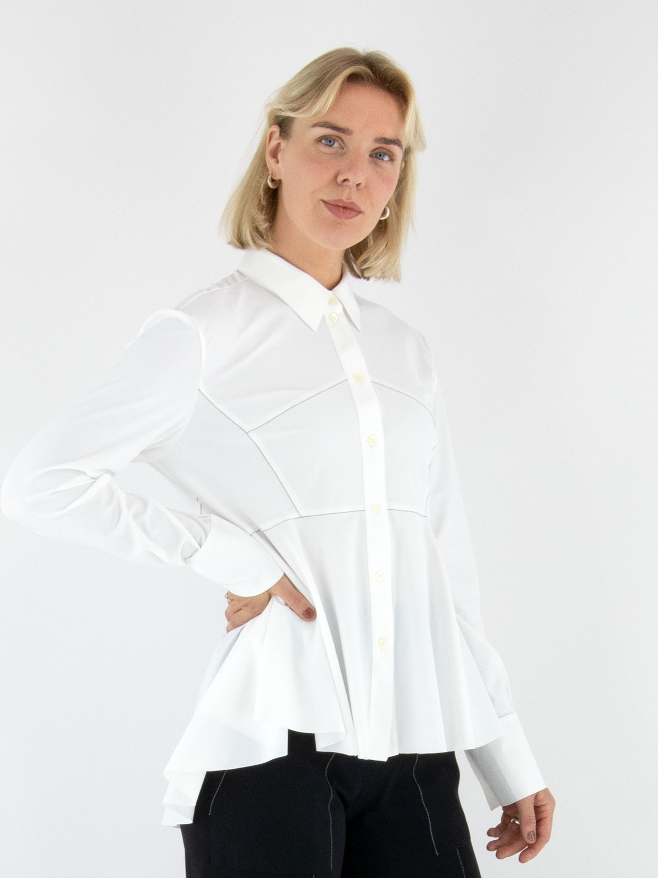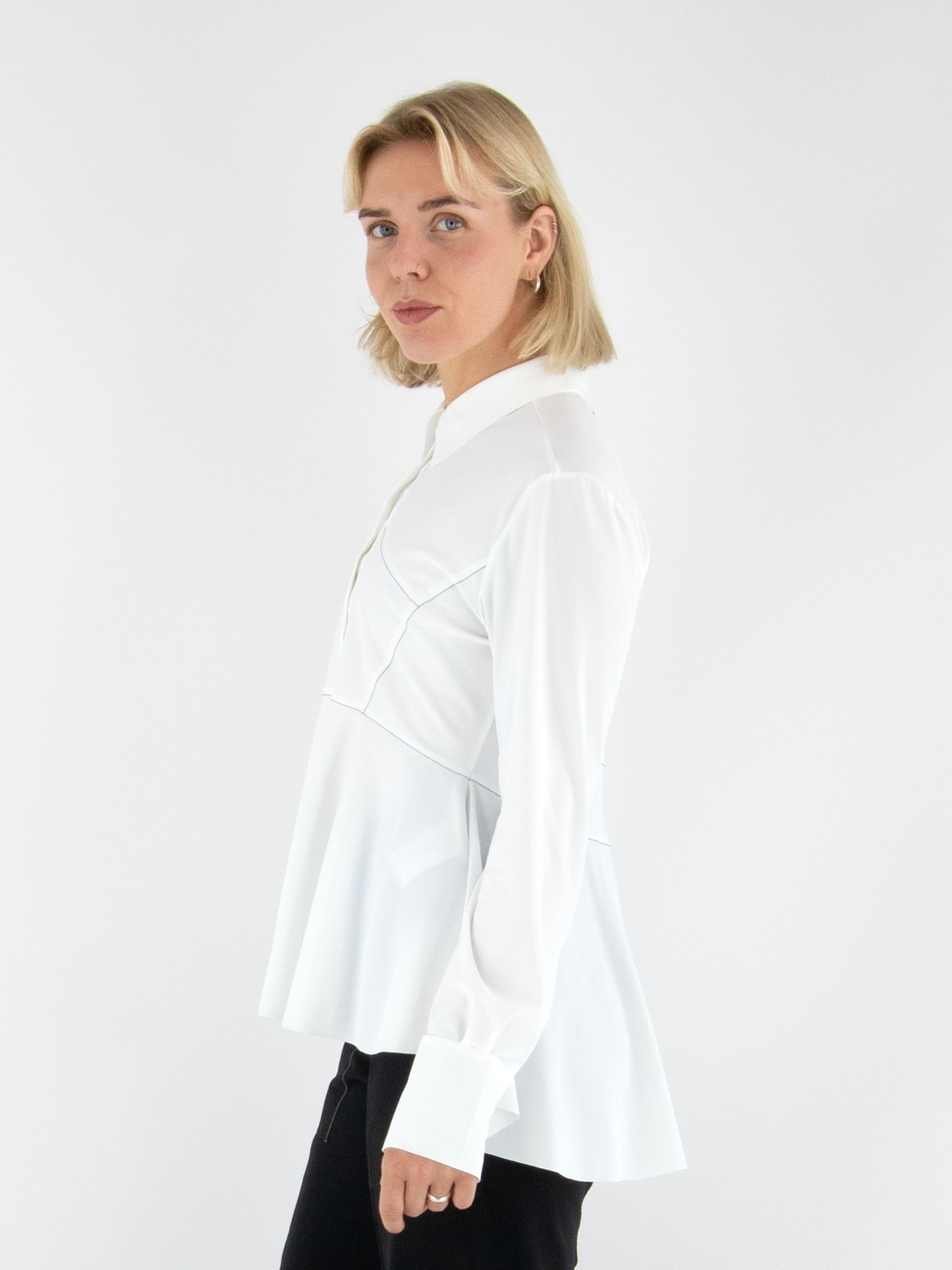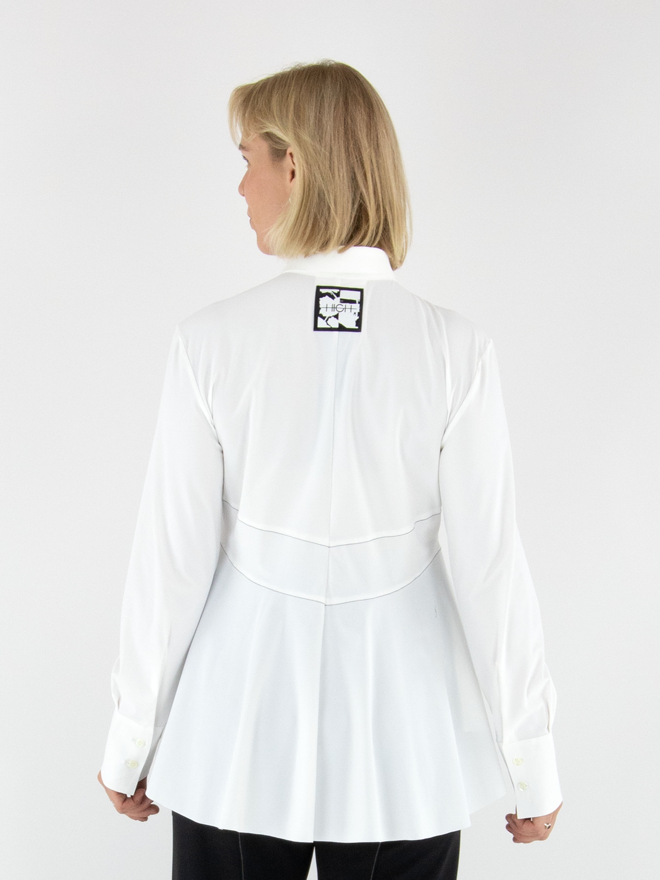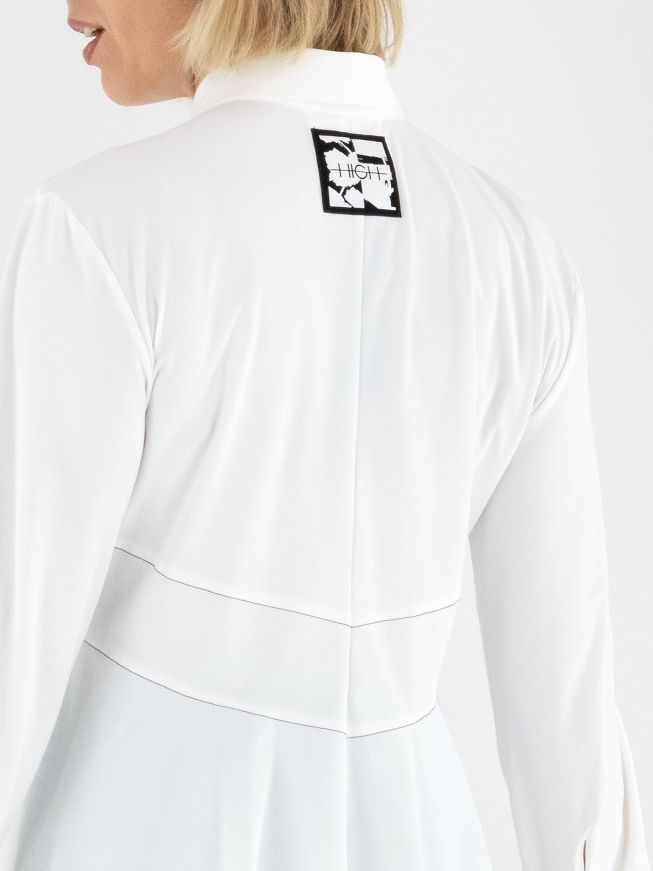 Getailleerde blouse van High in klassiek wit. Boven de taille zorgen meerdere decoratieve stiknaden in zwart garen voor een stijlvol contrast en een verfijnd accent. Deze exclusieve designerblouse kan met de hand worden gewassen.