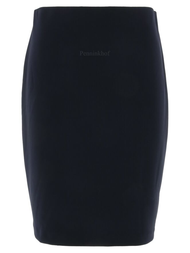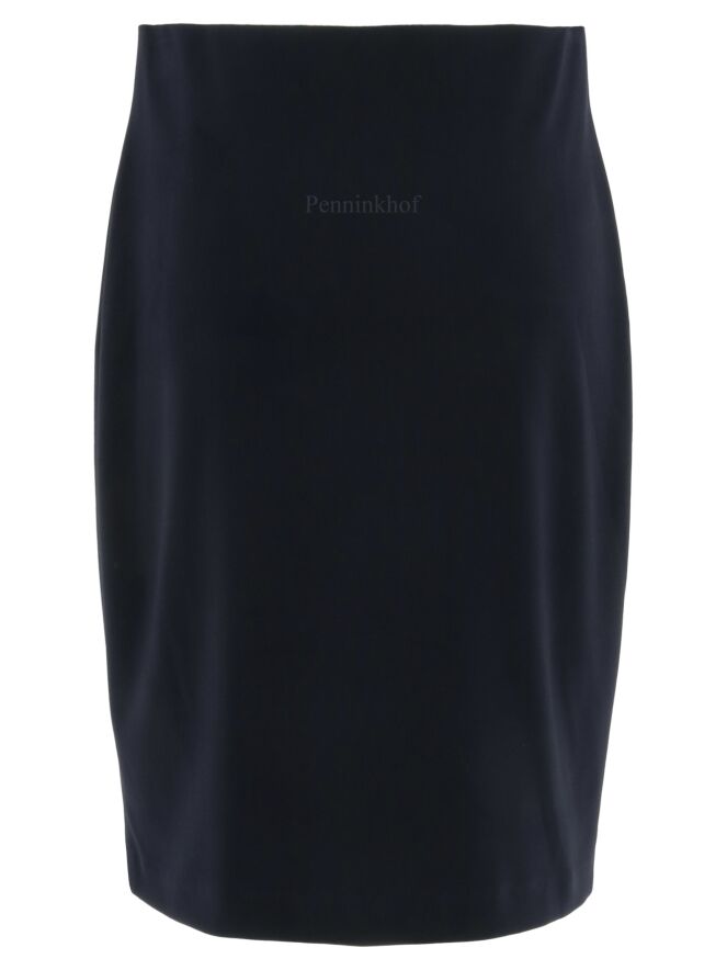 Een rok van Joseph Ribkoff in een marineblauwe kleur. In de taille is een elastieken band. De rok is niet gevoerd en mag op de hand worden gewassen.