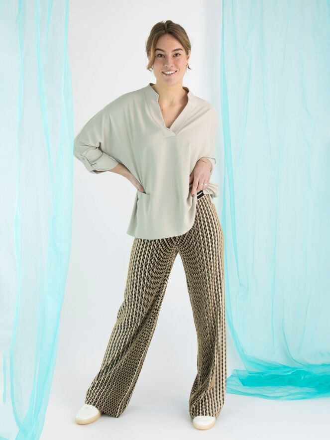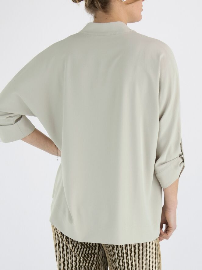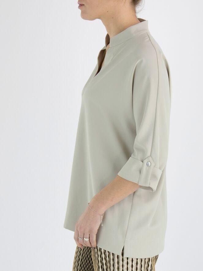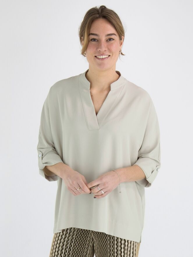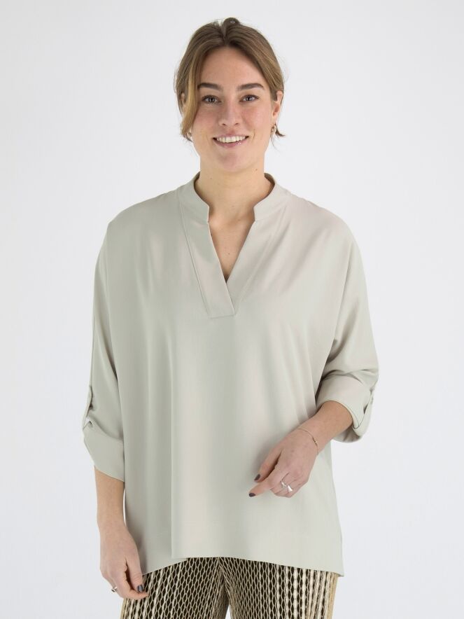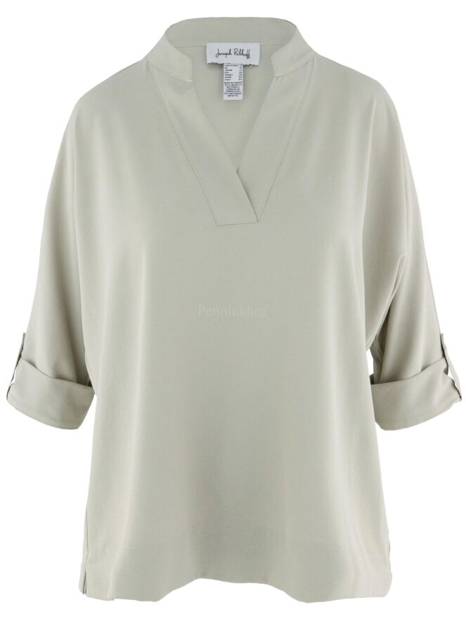 Een blouse van Joseph Ribkoff in de kleur kit. De blouse heeft een V-Hals en halflange mouwen. Deze blouse mag op de hand worden gewassen.