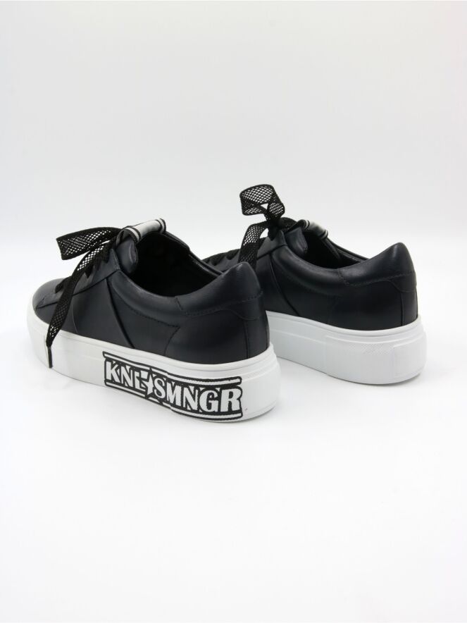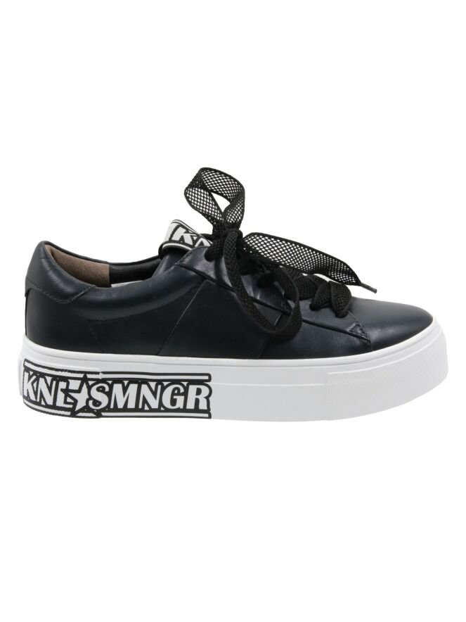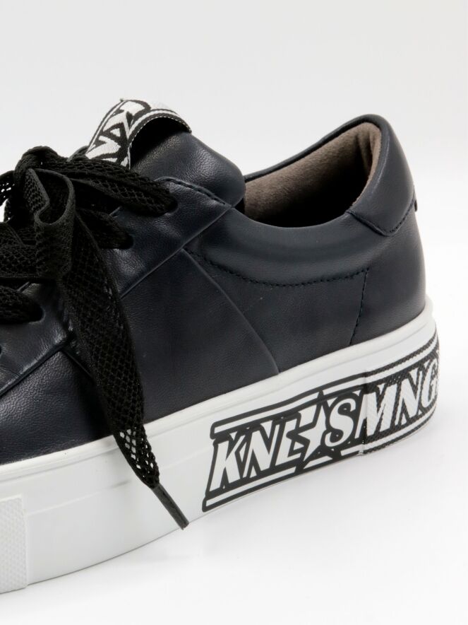 Een sneaker van Kennel und Schmenger in de kleur marineblauw. Aan de buitenzijde van de roomwitte zool staat in het zwart de tekst: Kennel Schmenger. De sneaker heeft veters in een geperforeerde netstructuur. De binnenkant van de schoen is met leder gevoerd.