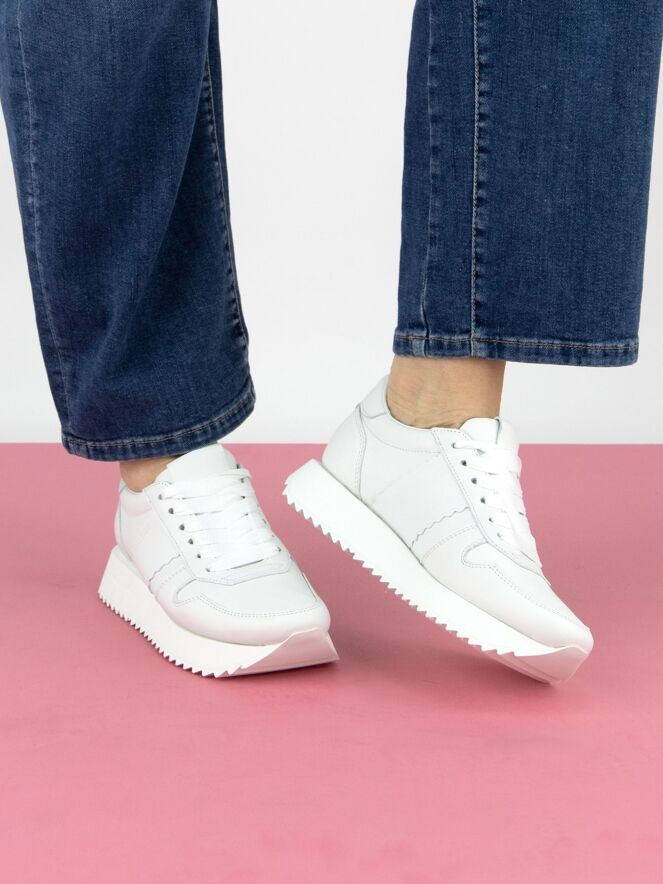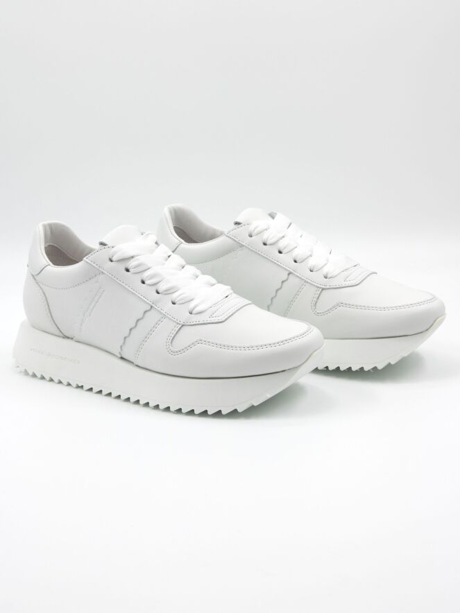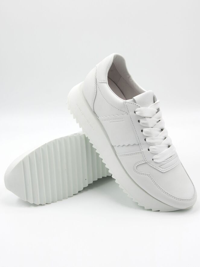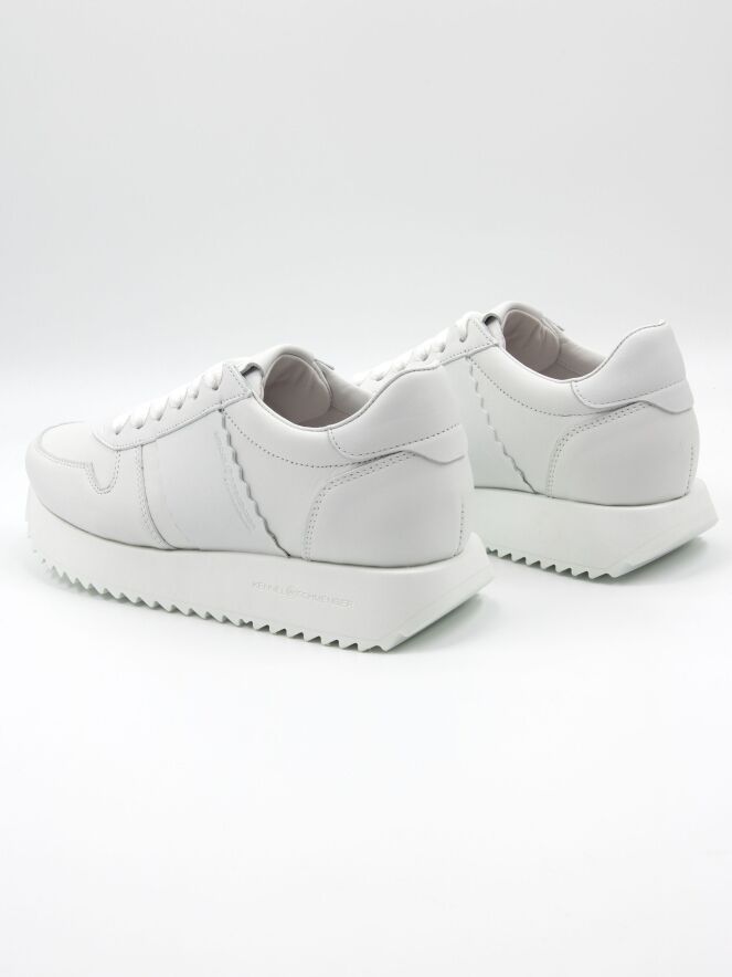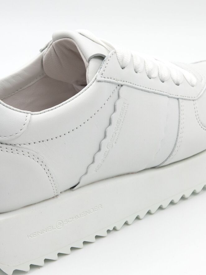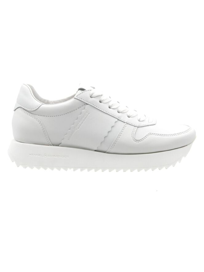 Een sneaker van Kennel und Schmenger in de kleur wit. De sportieve zool is fijn gekarteld aan de onderkant. De binnenkant is met leder gevoerd.