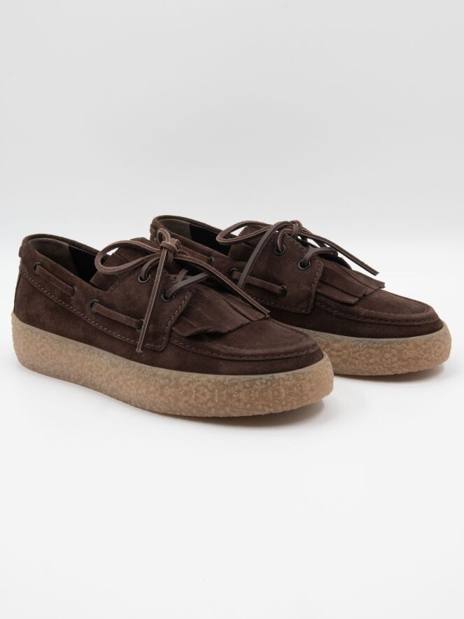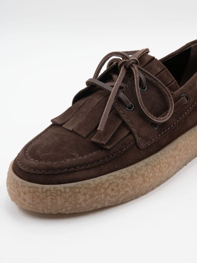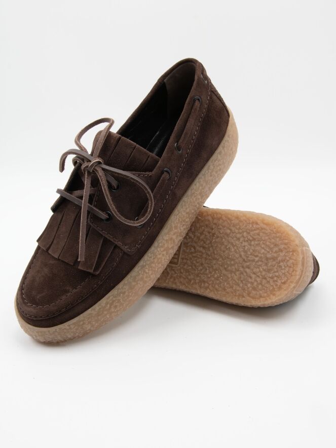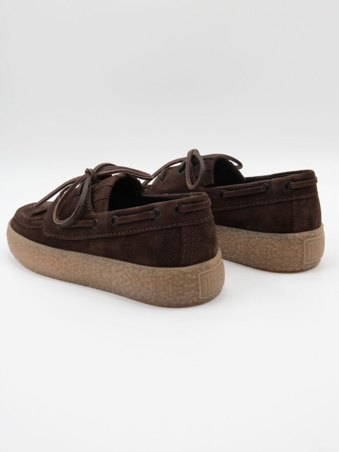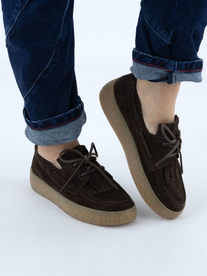 Een instapper van Kennel & schmenger in de kleur donkerbruin. Op de voorvoet is een sierstrik en op de tong heeft een korte jamboree. De stoere zool in een camel kleur is gekarteld. De binnenkant is met leder gevoerd.