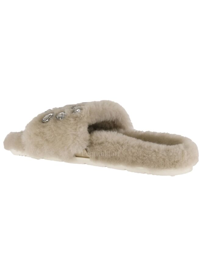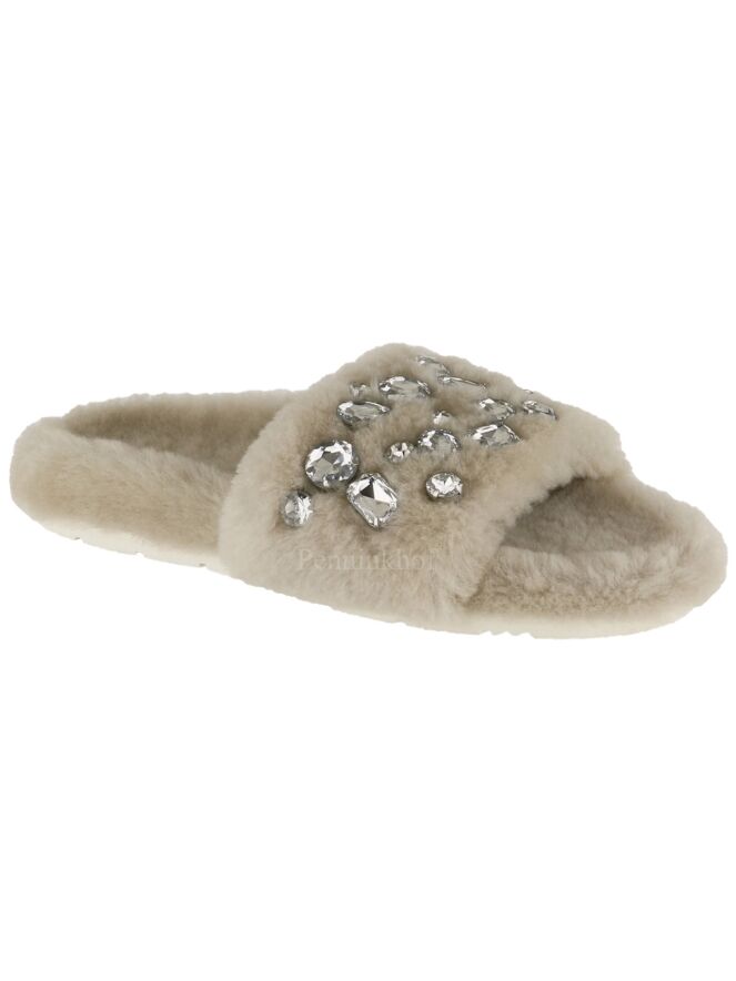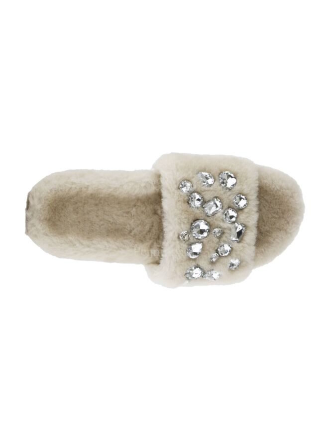 Een pantoffel van Kennel & Schmenger in de kleur beige. Op de voorvoet zijn meerdere strasstenen met verschillende vormen.