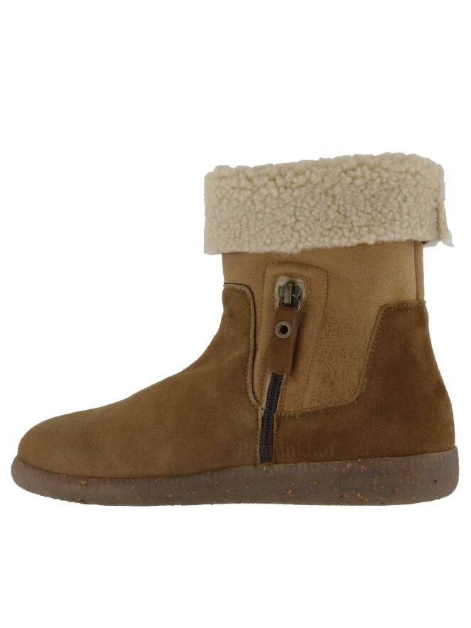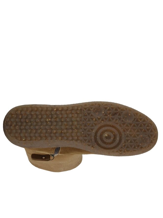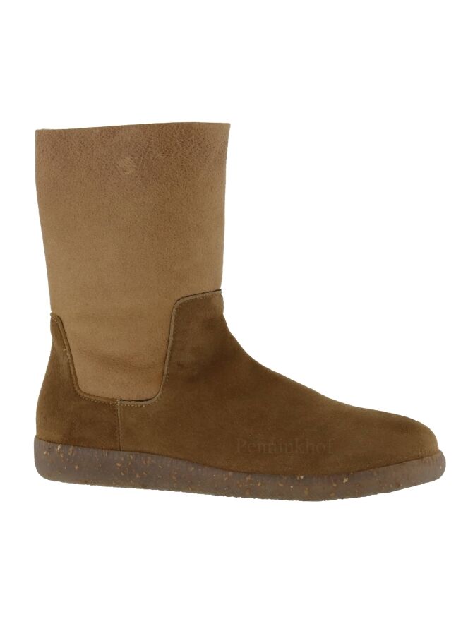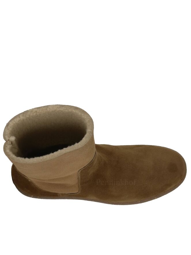 Een mouton laarsje van La Cabala in 2 kleuren camel. De voorvoet is in een volle camel kleur en de schacht in en zachte camel kleur. De binnenkant van de schacht is gevoerd met imitatie bont.
