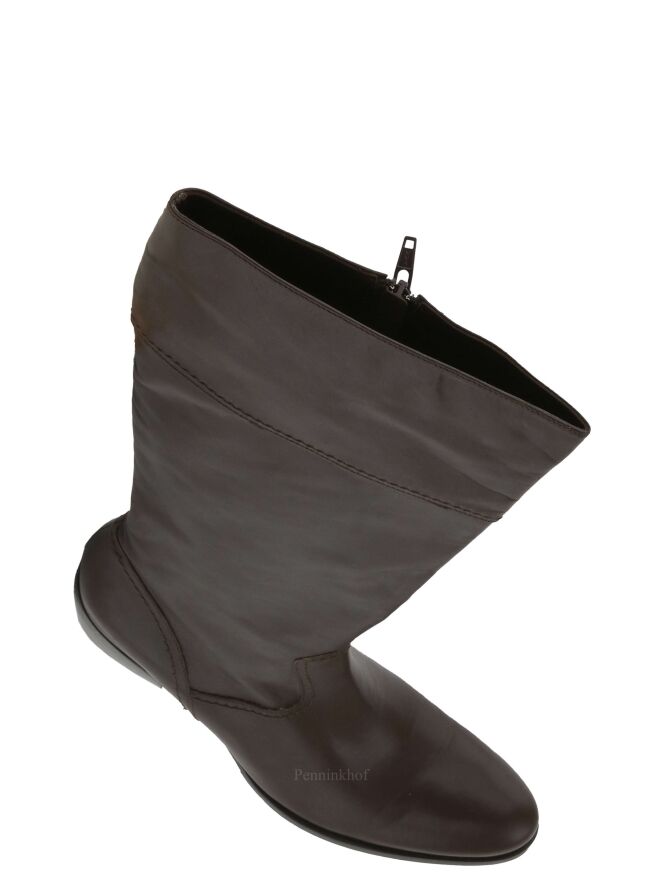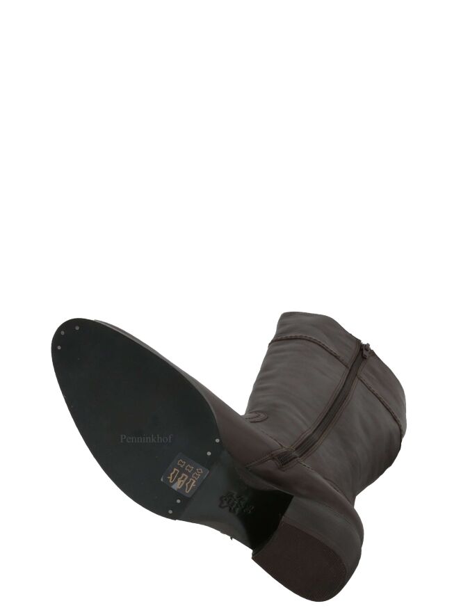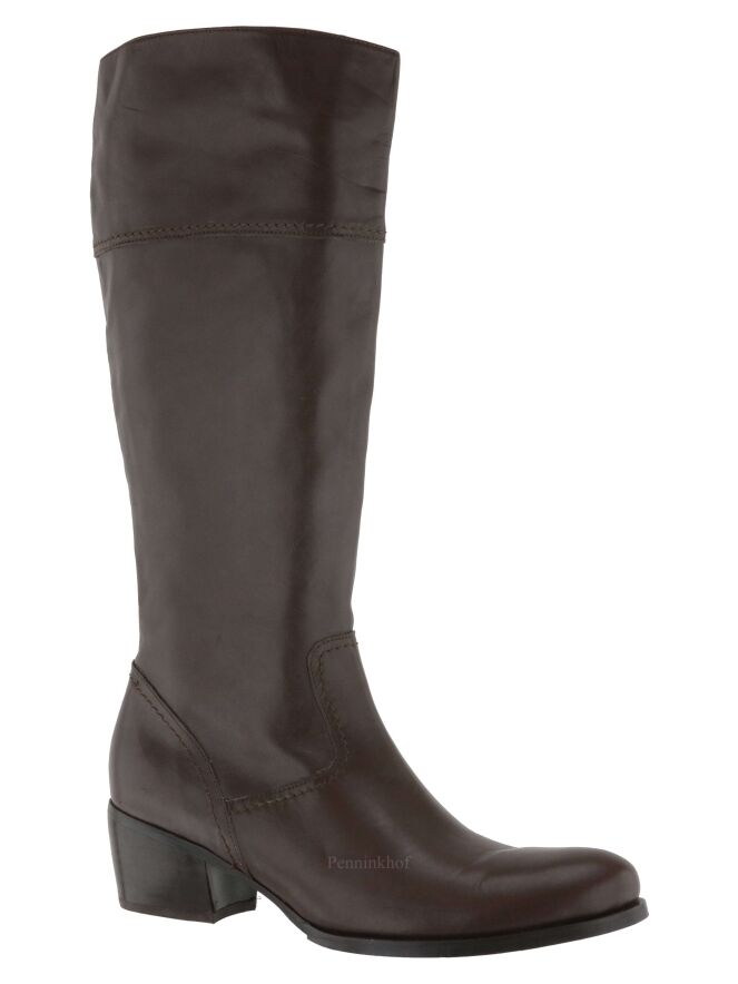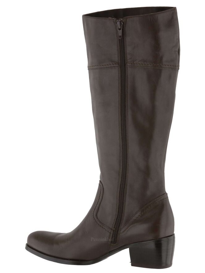Een hoge laars van Luciano Barachini in de kleur mokka bruin. 10 cm onder de rand van de schacht is een dubbele stiknaad. De binnenkant is met leder gevoerd.