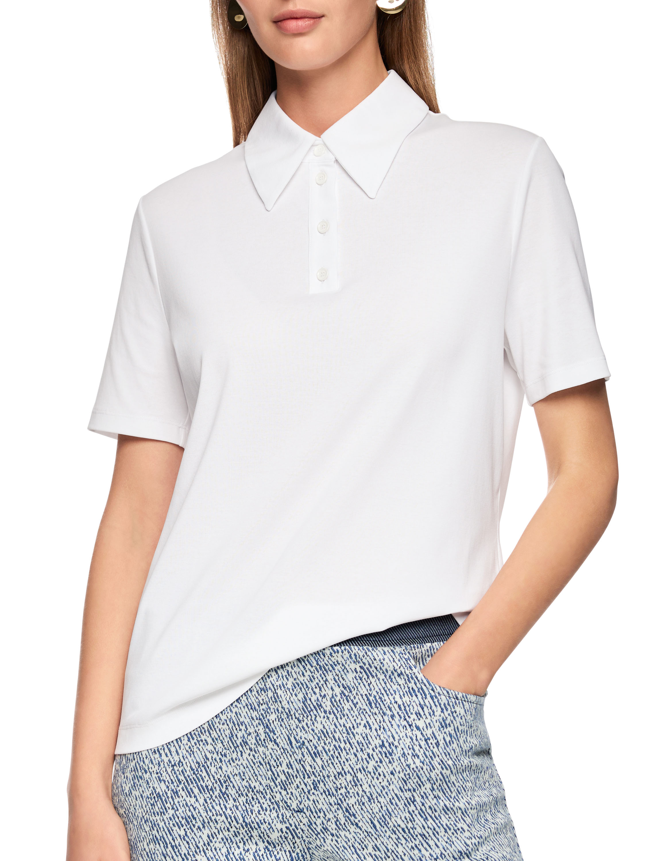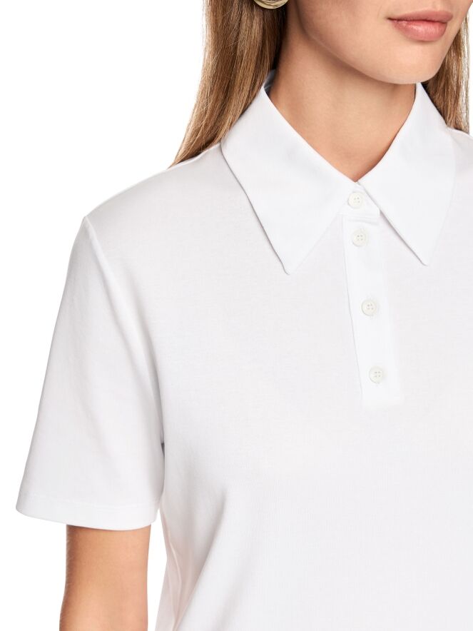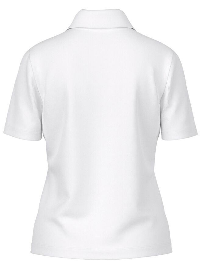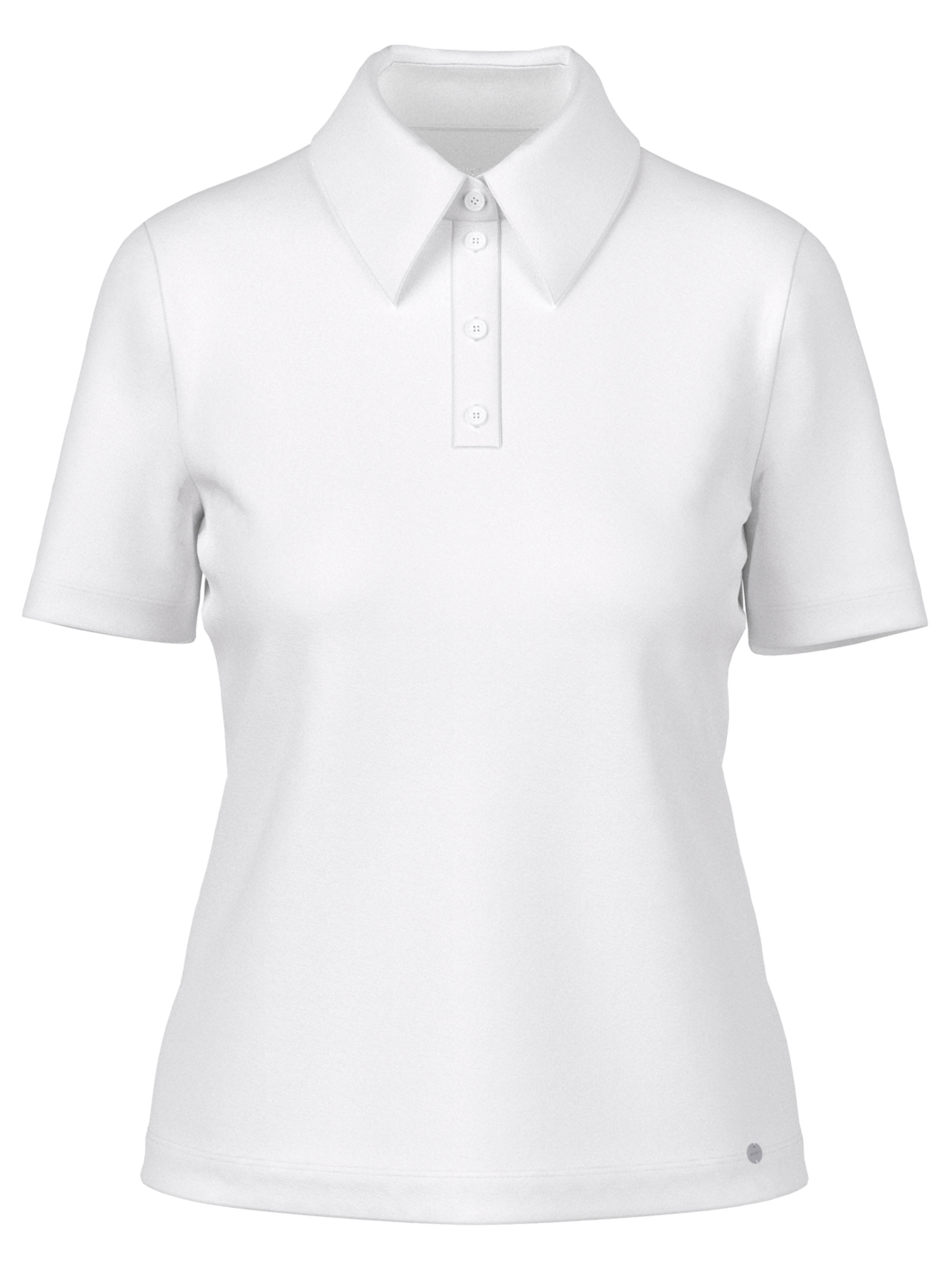 Polo shirt van Marc Cain in de kleur wit. Dit elegante shirt is uitgevoerd in een uni kleur en heeft korte mouwen, wat zorgt voor een tijdloze en verfijnde uitstraling. Deze exclusieve designer polo kan op 30 graden worden gewassen.