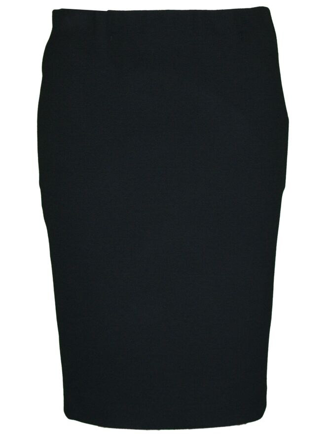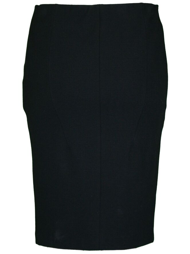Een rok van het merk Marc Cain in de kleur zwart. In de taille is een elastieken band verwerkt en de rok is gevoerd. Deze rok valt net boven de knie en mag op de hand worden gewassen.