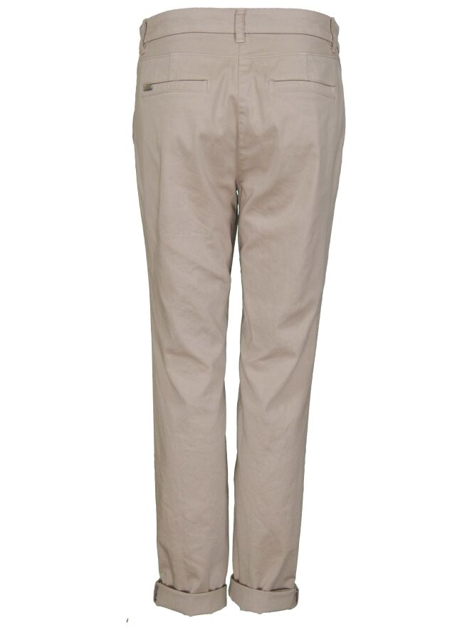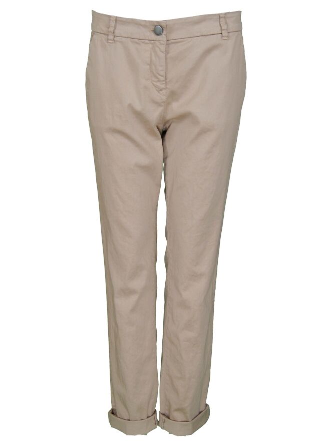 Een broek van het merk Marc Cain in de kleur zalm rose. De broek heeft 2 steekzakken en is recht gesneden. Aan de onderzijde is een smalle omslag van 3 cm breed. Deze broek mag op 30 graden worden gewassen.