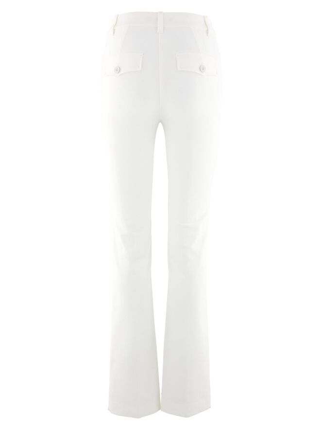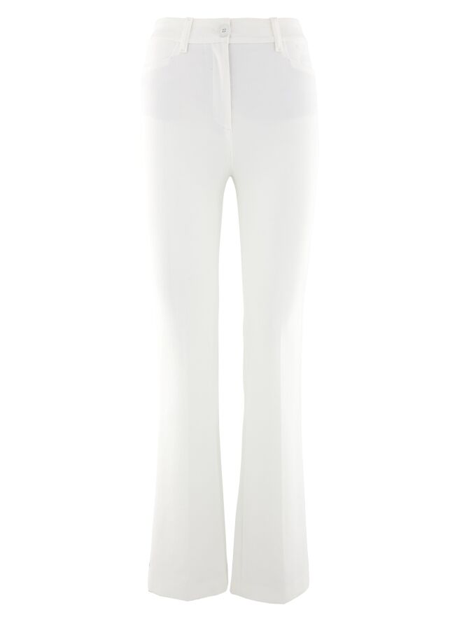 Een jeans van het merk Marc Cain in de kleur wit. De jeans heeft een 5 pocket model en heeft flair pijpen. Deze jeans mag op 30 graden worden gewassen.