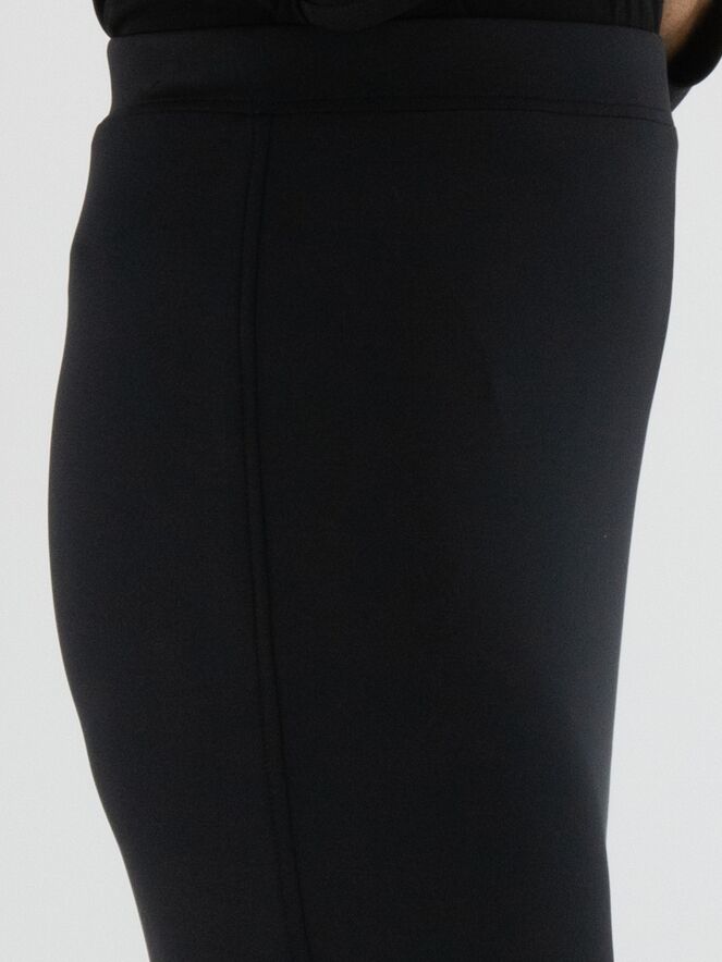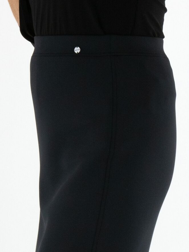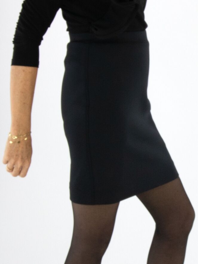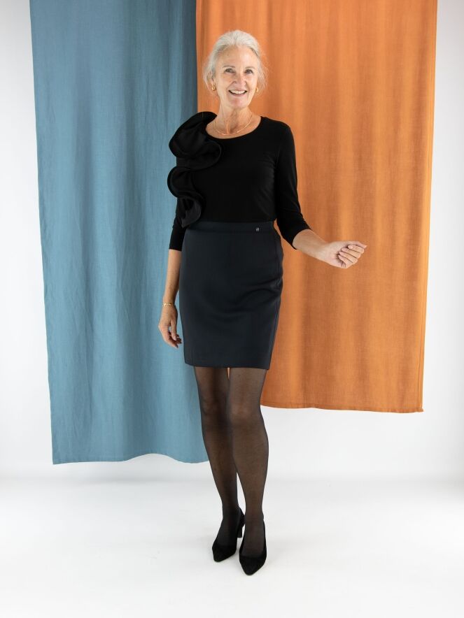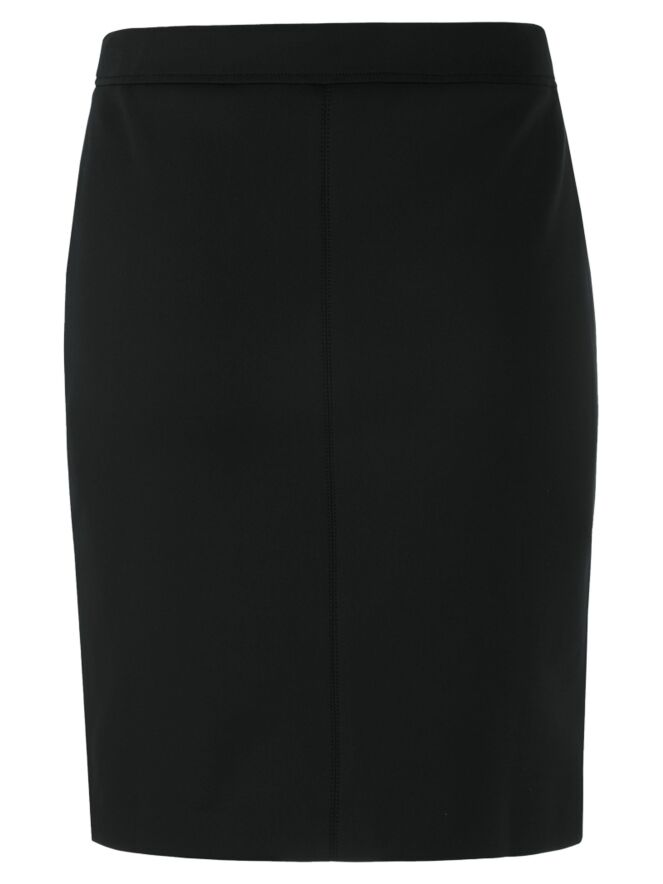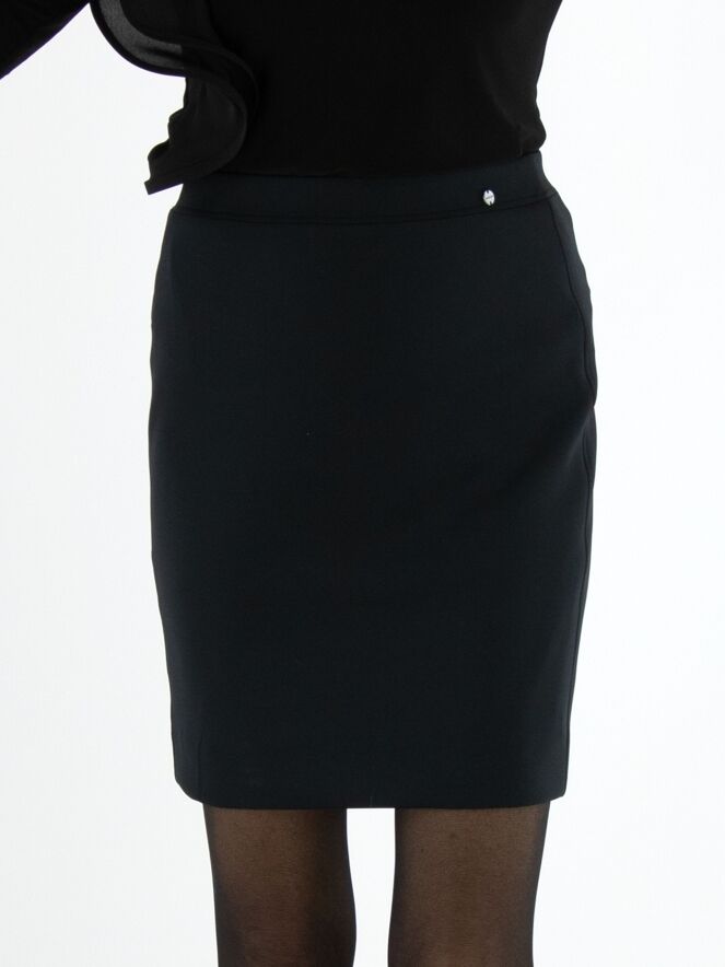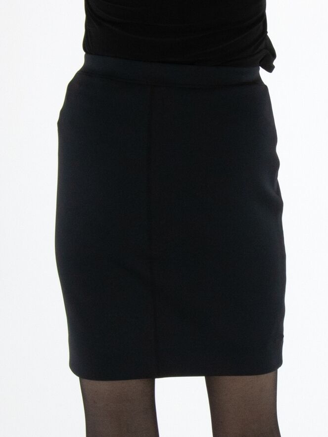 Een rok van Marc Cain in de kleur zwart. In de taille zit een elastische band. De rok is gevoerd en mag op 30 graden worden gewassen.