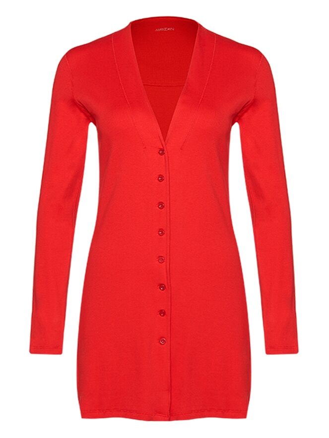 Een lang vest uit de essentiels collectie van Marc Cain. Het vest is langs de V hals afgestikt en heeft een lange mouw. Zoals elk vest van dit model kan dit vest op heel veel worden door gecombineerd. Het vest mag op 30 graden worden gewassen.
