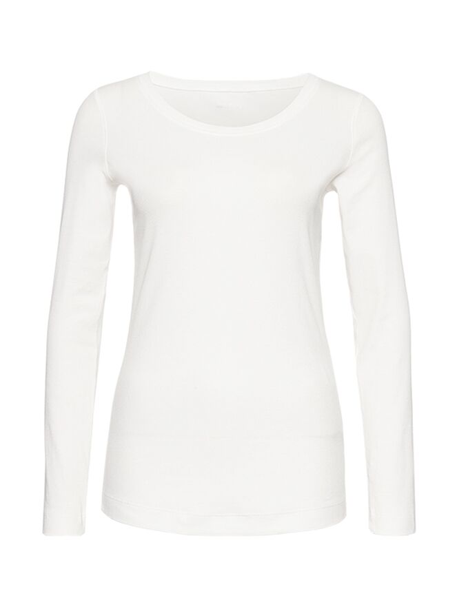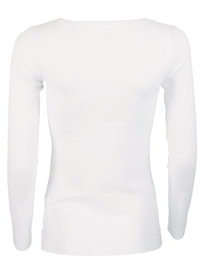 Een basis shirt van het merk Marc Cain in de kleur wit. Het shirt heeft lange mouwen en een ronde hals belijning. Dit shirt mag op 30 graden worden gewassen.