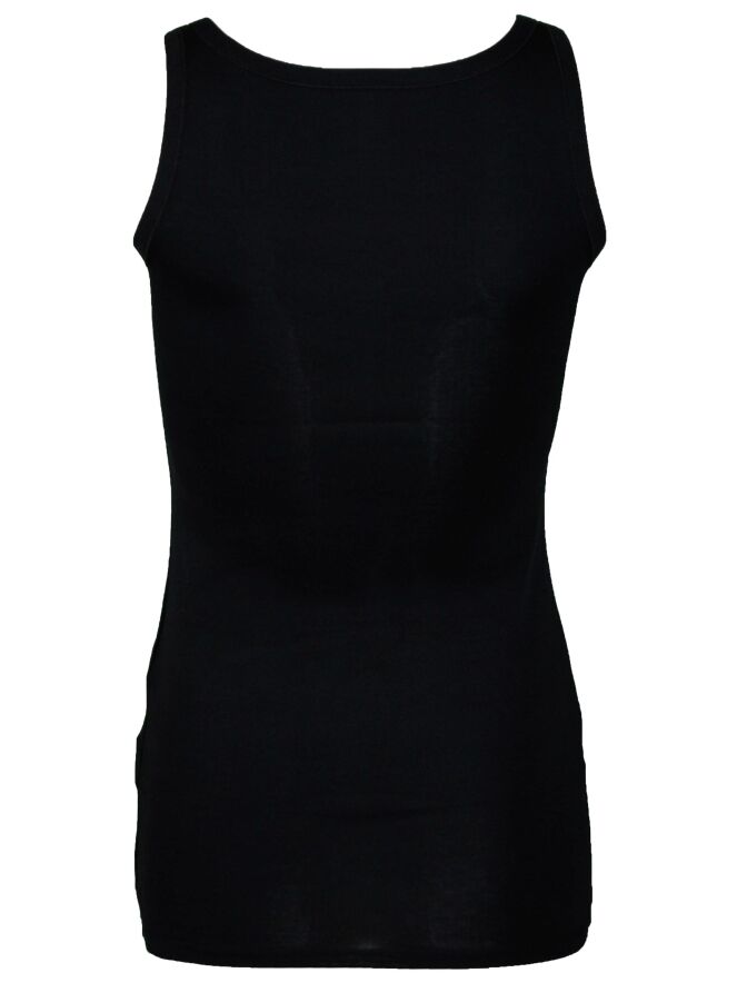 Een basis top van het merk Marc Cain in de kleur zwart. De viscose maakt dat de stof zeer zacht aanvoelt op de huid. De top heeft een ronde hals en is licht getailleerd. De schouderbandjes zijn 3 cm breed. Deze top mag op 30 graden worden gewassen.