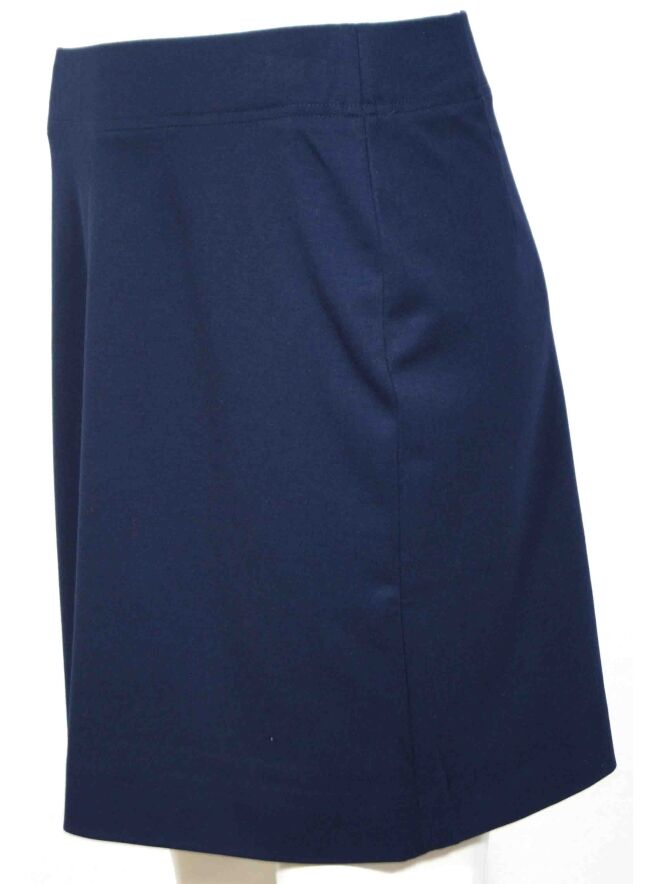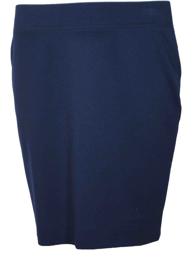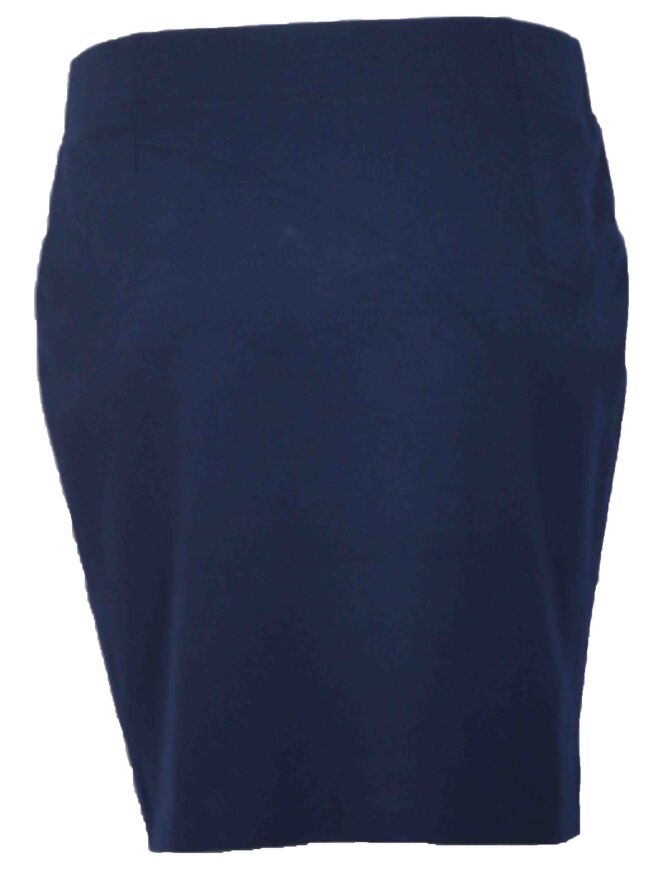 Een rok uit de basis collectie van het merk Marc Cain in de kleur marine blauw. De rok heeft een elastieken tailleband van 4 cm breed en is gevoerd. Deze rok mag op de hand worden gewassen.