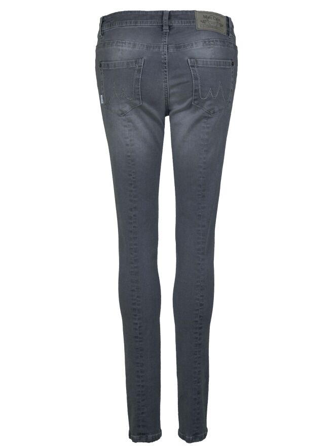 Een jeans van het merk Marc Cain in de kleur lichtgrijs. Het is een 5 pocket model met een slanke pijp. Deze jeans mag op 30 graden worden gewassen.