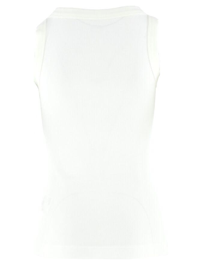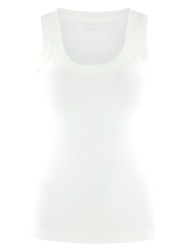 Een top van Marc Cain in een roomwitte kleur. De top heeft een ronde hals en mag op 30 graden worden gewassen.
