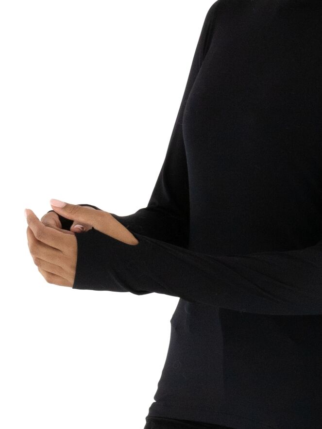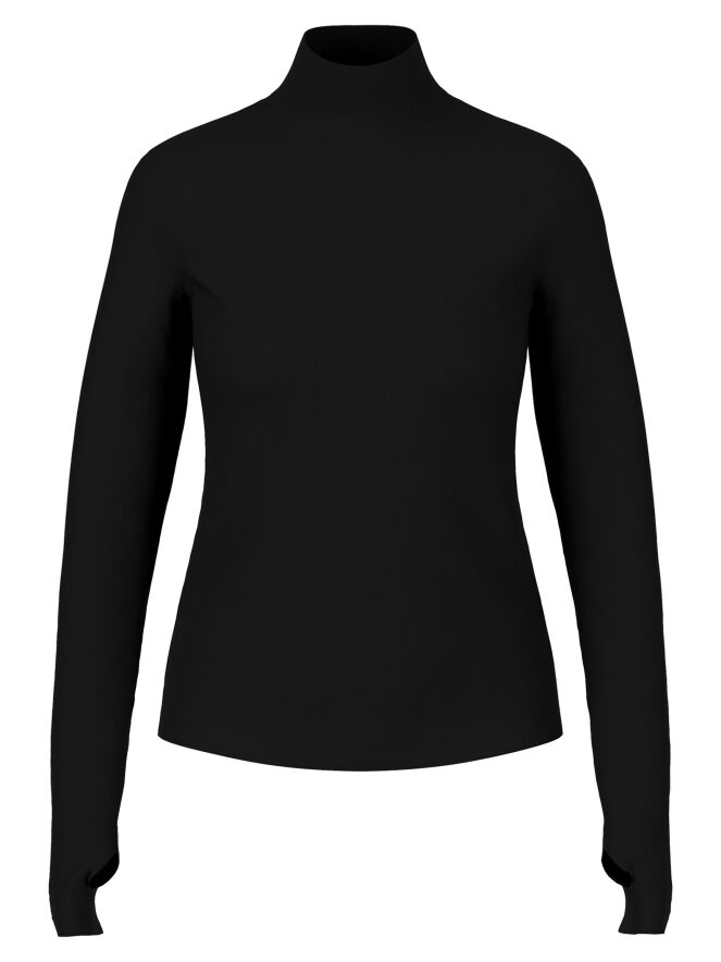 Een pantyshirt van Marc Cain in de kleur zwart. Het shirt heeft een turtle hals en lange mouwen. Dit shirt mag op 30 graden worden gewassen.