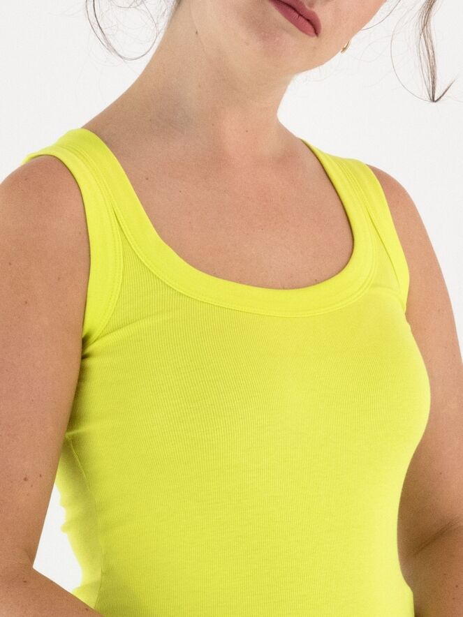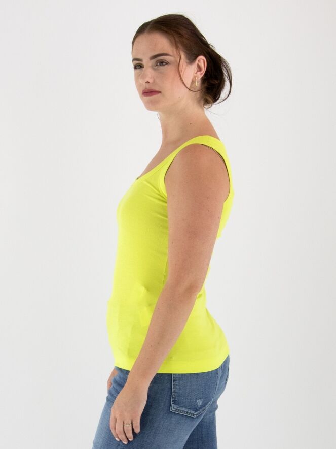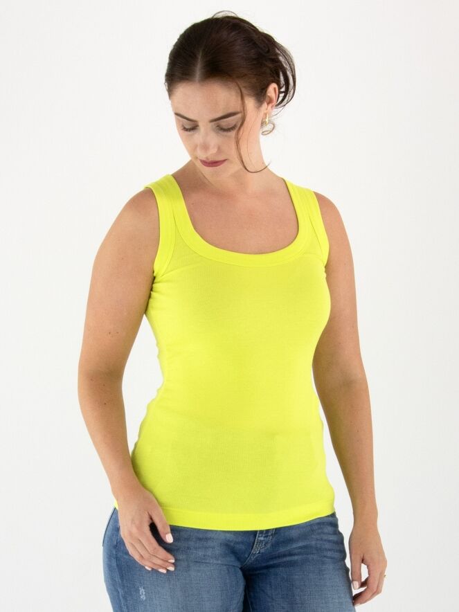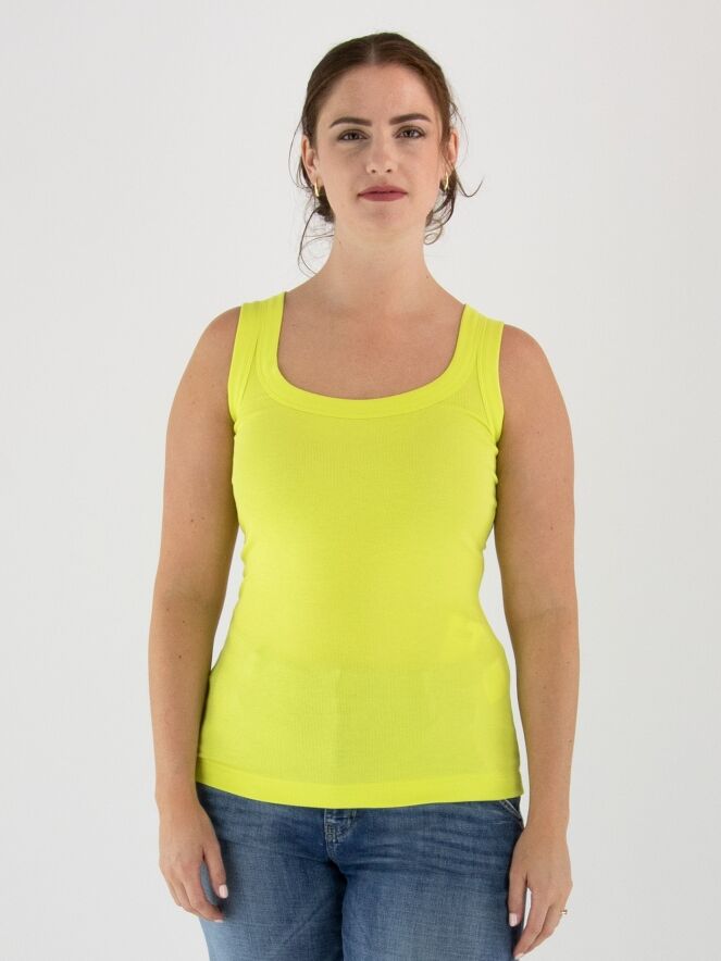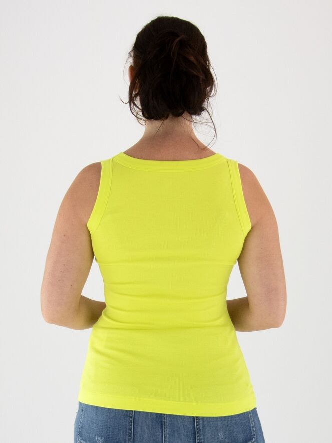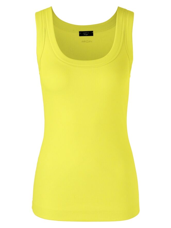 Een top van Marc Cain in een limoengroene kleur. De top heeft een ronde hals en mag op 30 graden worden gewassen.