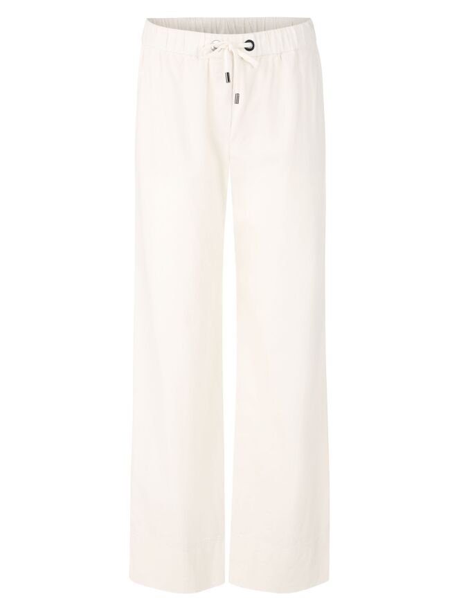 Een babycord broek van Marc Cain in de kleur roomwit. In de elastische tailleband zit een koord in een tunnelverwerking. De broek is recht gesneden en heeft steekzakken. Deze broek mag op 30 graden worden gewassen.