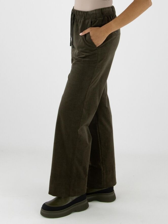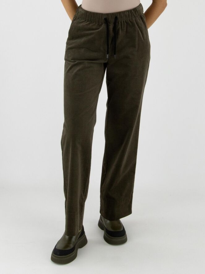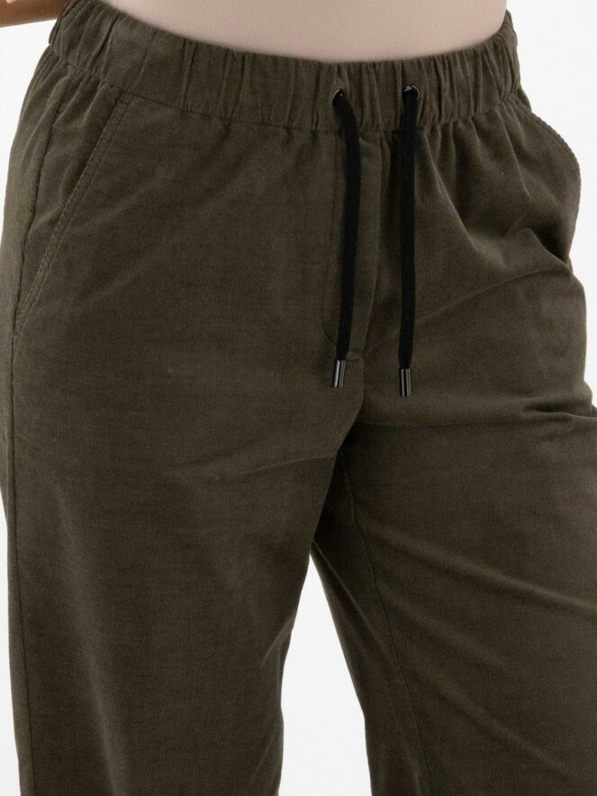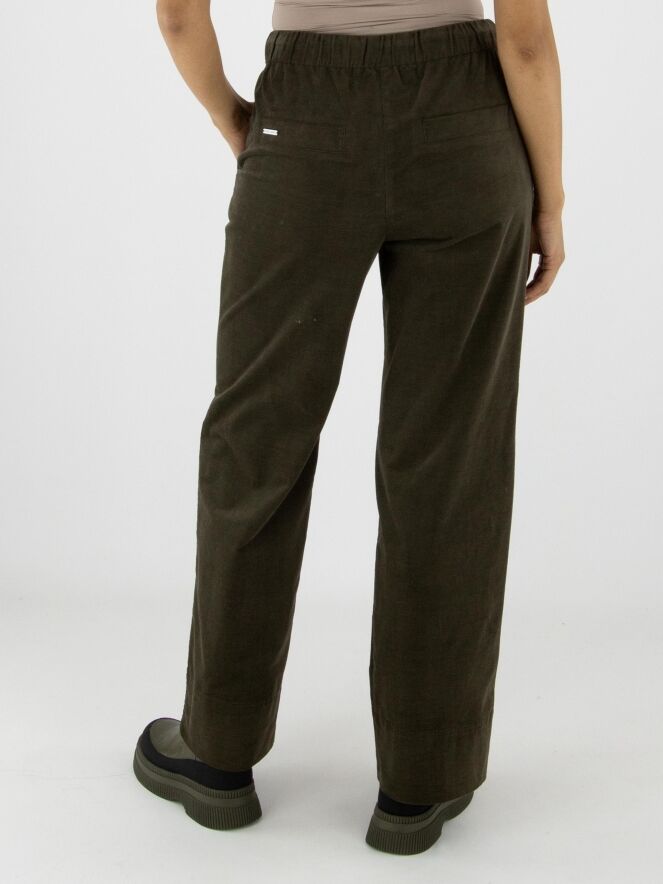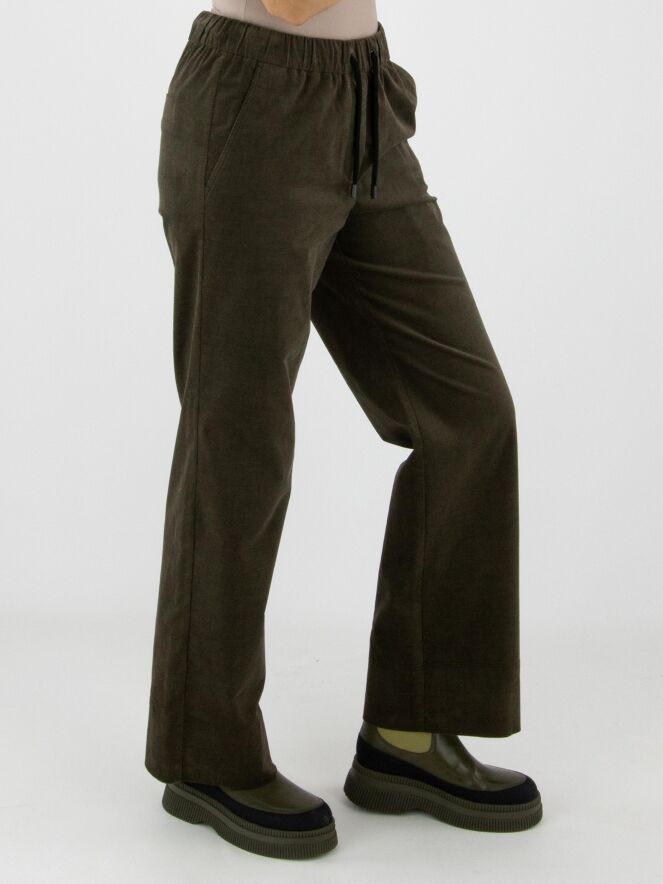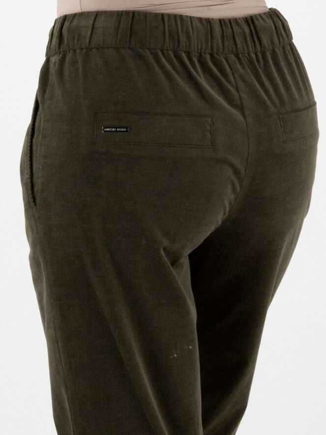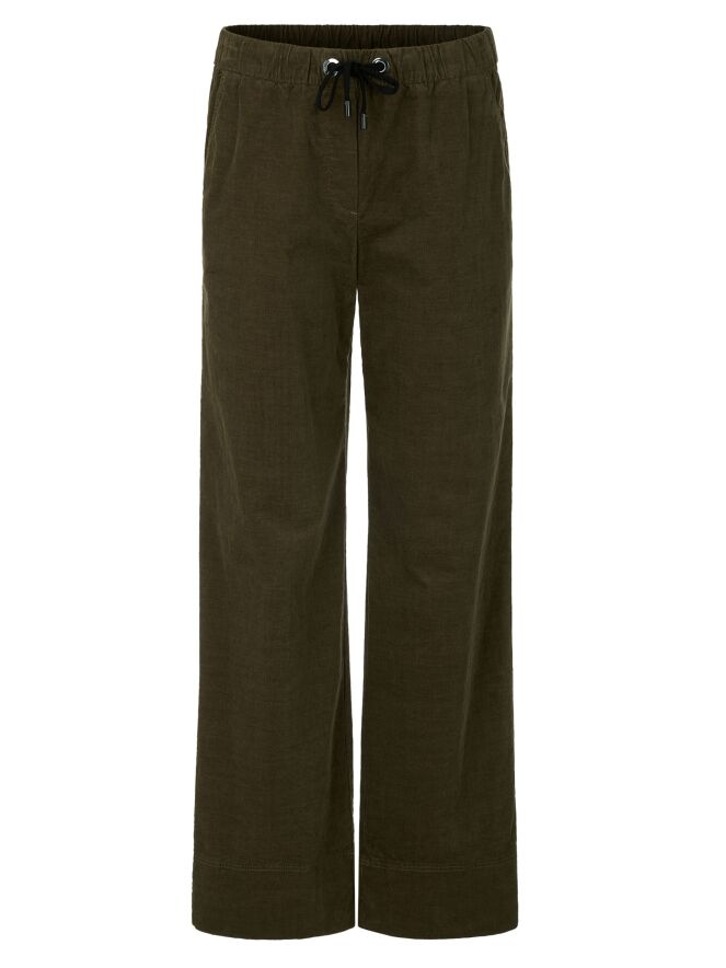 Een babycord broek van Marc Cain in de kleur olijfgroen. In de elastische tailleband is een koord verwerkt in een tunnel. De broek is recht gesneden en heeft steekzakken. Deze broek mag op 30 graden worden gewassen.