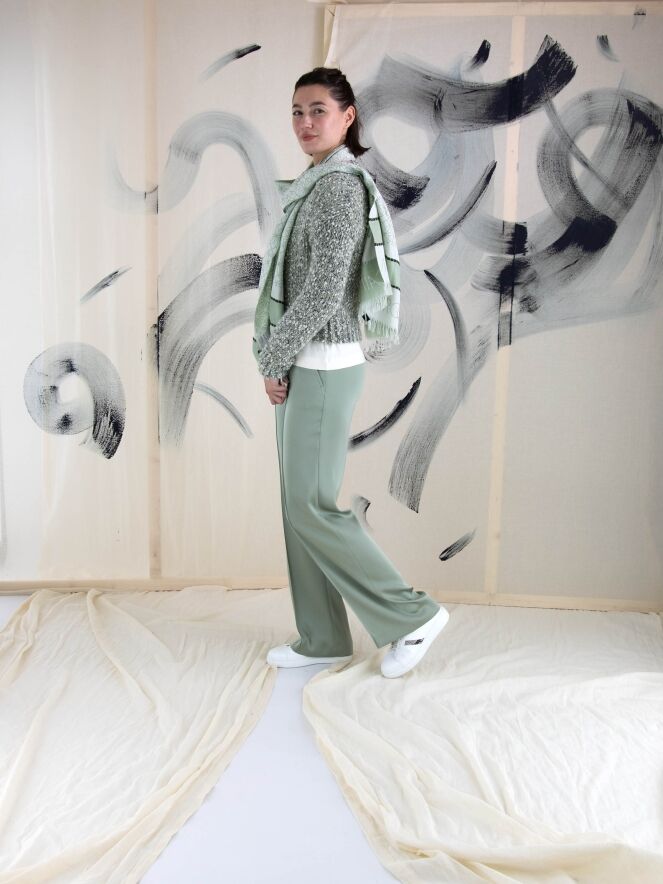 30% Wol 23% Polyamide, 18% Mohair, 17% Polyester, 11% Alpaca, 1% gemetaliseerd Polyester