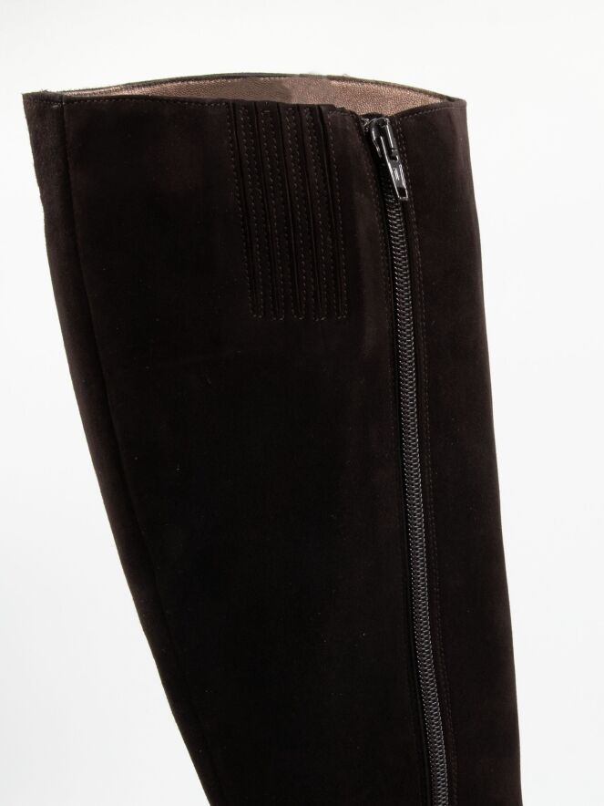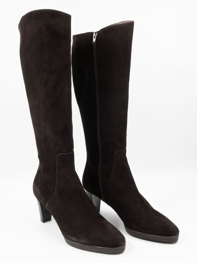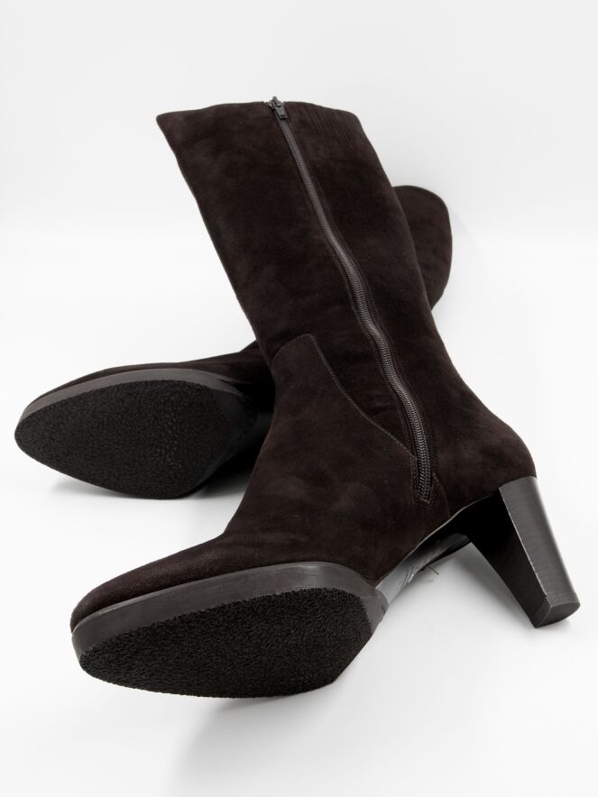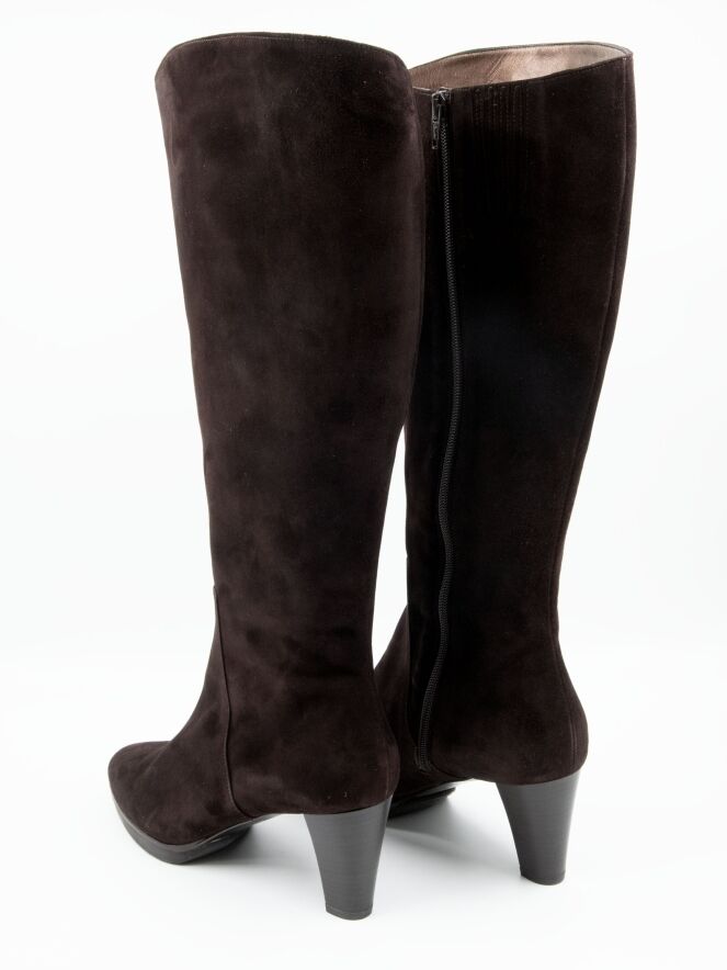 Een laars van het merk Mauro Teci in de kleur mokka bruin. Aan de bovenzijde van de schacht is een insnijding met een verborgen elastieken stuk.De rits aan de binnenzijde van de schacht is over de gehele lengte van de schacht. De hoogte van de schacht is 41 cm en de omtrek is 39 cm.