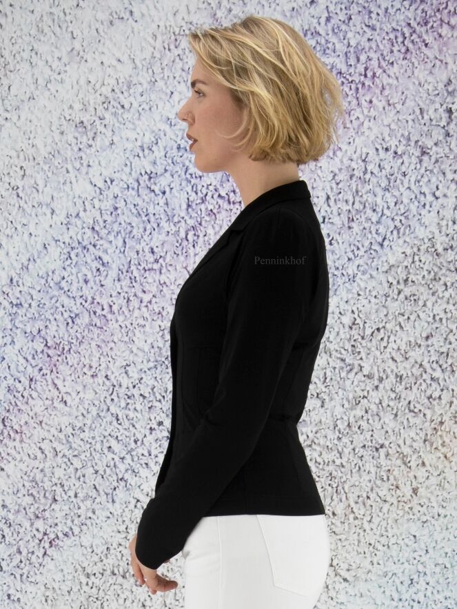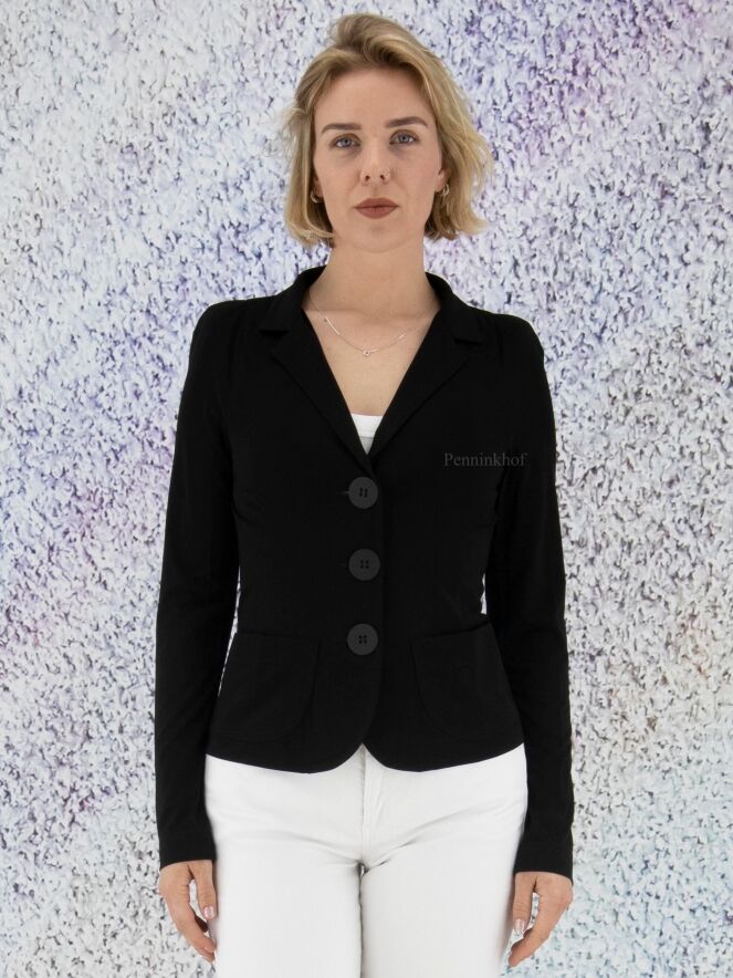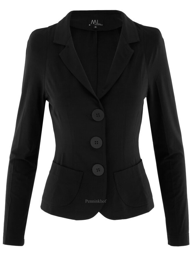 Een blazer van ML Collections in de kleur zwart. De blazer heeft een 3 knoops sluiting en is ongevoerd. Deze blazer mag niet worden gewassen.