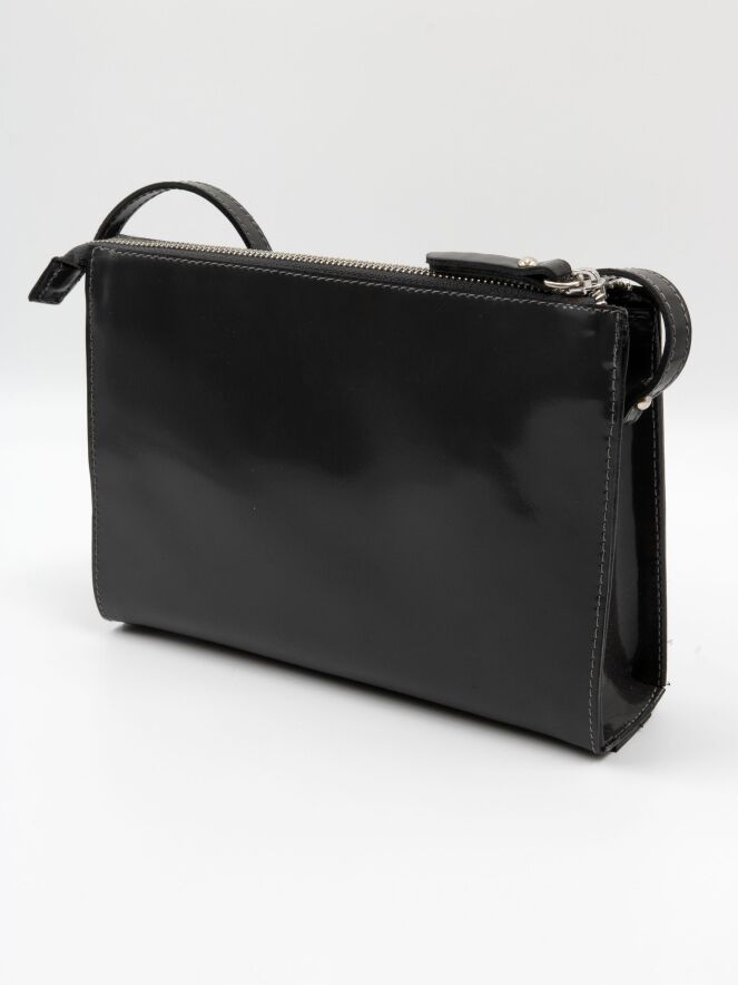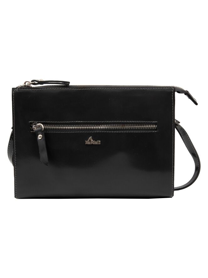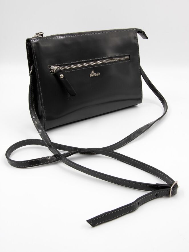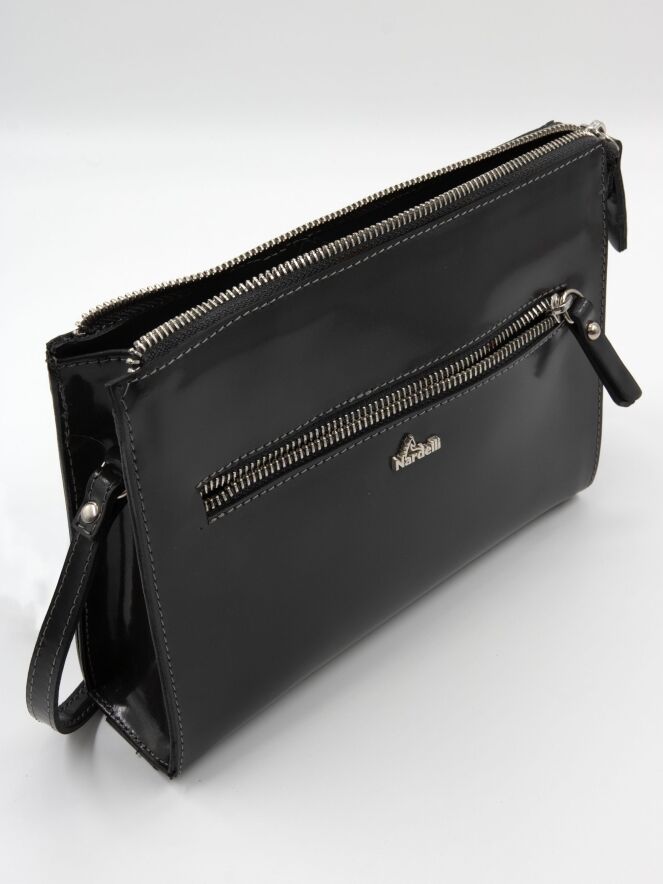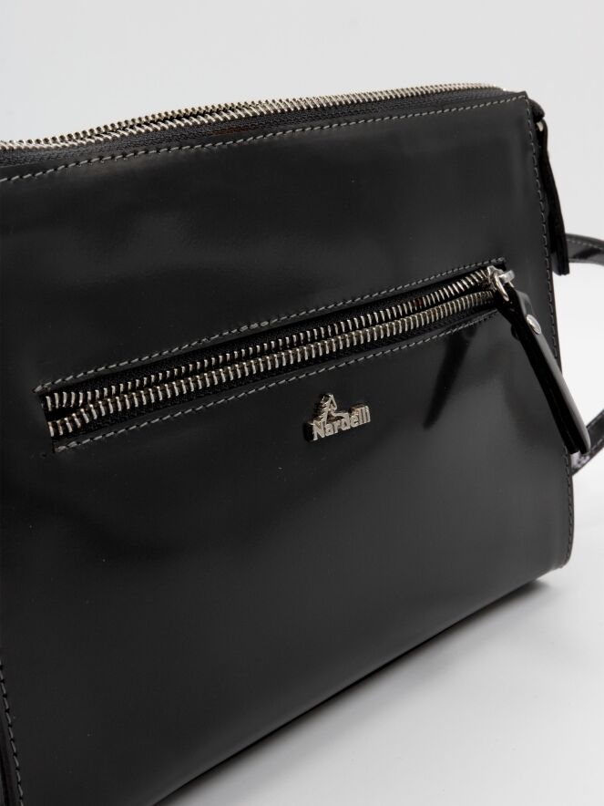 Een tas van het merk Nardelli in een spaziolate leder in de kleur antraciet. De tas heeft een lang verstelbaar hengsel en wordt gesloten met een rits.