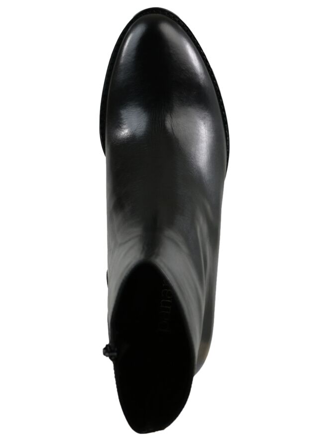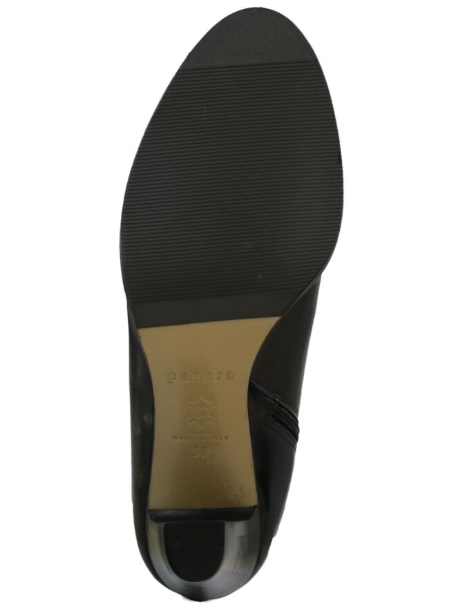 Een enkellaarsje van het merk Panara in de kleur zwart. Het enkellaarsje heeft een ronde neus en is van zacht kalfsleder gemaakt. De schachthoogte is 12 cm vanaf de hiel en de schacht omtrek is 25 cm. De binnenkant van het enkellaarsje is met leder gevoerd.