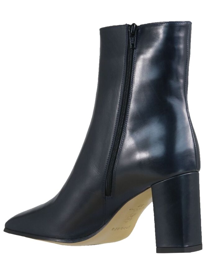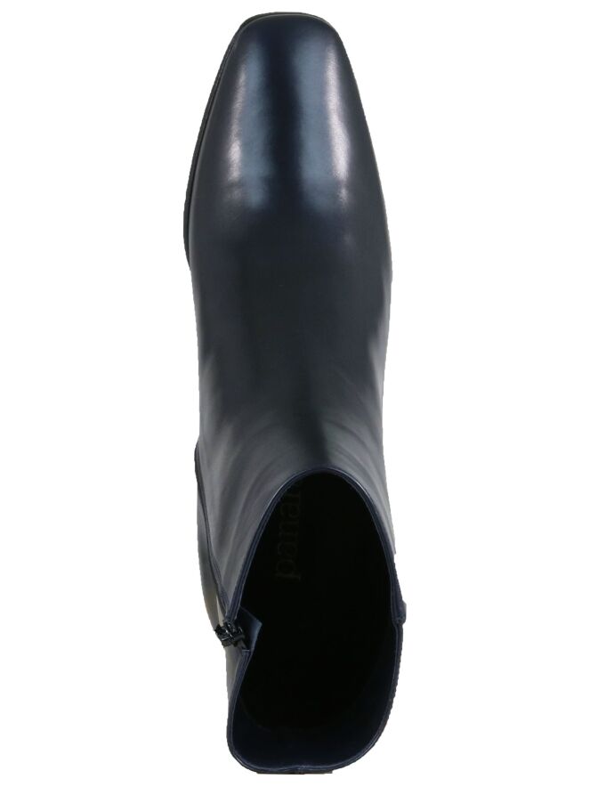 Een kort laarsje van het merk Panara in de kleur marine blauw in nappa leder. Het laarsje heeft een vierkante neus en heeft een blokhak. De schachthoogte is 15 cm vanaf de hak en de schachtomtrek is 27 cm. De binnenkant is met leder gevoerd.