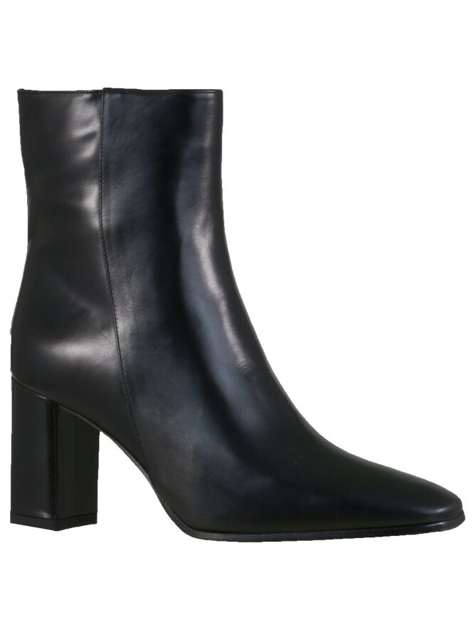 Een kort laarsje van het merk Panara in de kleur zwart in nappa leder. Het laarsje heeft een vierkante neus en heeft een blokhak. De schachthoogte is 15 cm vanaf de hak en de schachtomtrek is 27 cm. De binnenkant is met leder gevoerd.