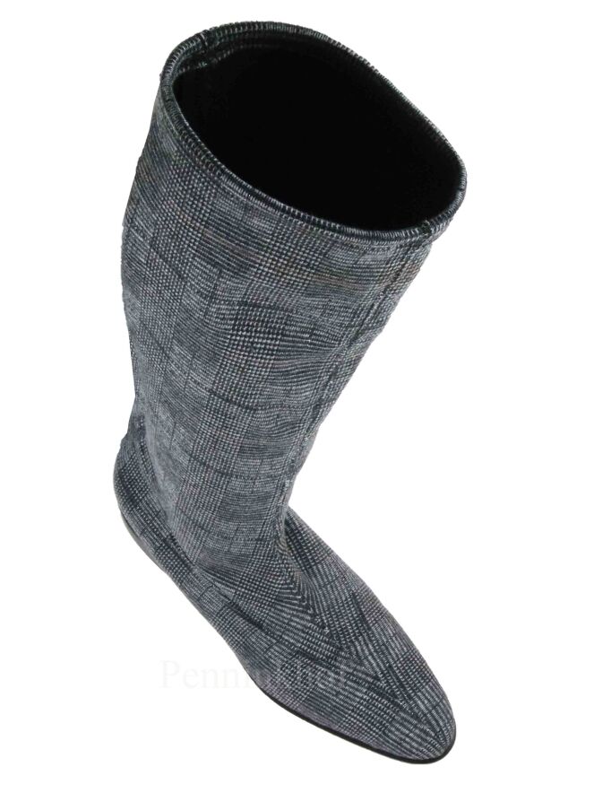 Een stretch laars van Panara in een prince de galles ruit met meerdere tinten grijs. De schacht is aan de binnenzijde ongevoerd.