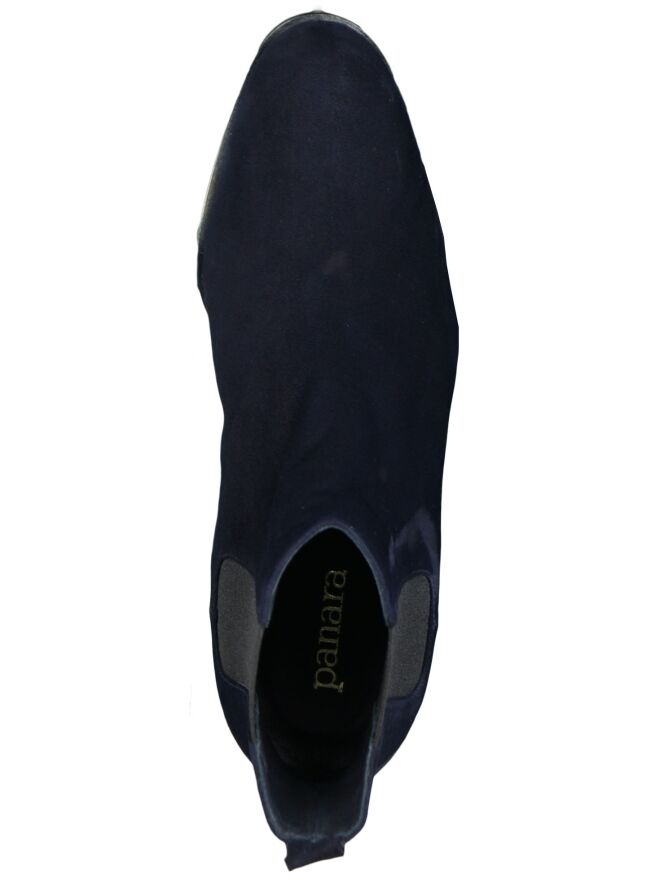 Een kort enkellaarsje van het merk Panara in de kleur marine blauw. Het laarsje heeft een ronde neus. Aan beide zijden van de schacht is elastiek. Het laarsje is aan de binnenkant met leder gevoerd.