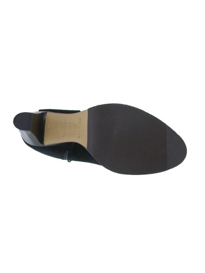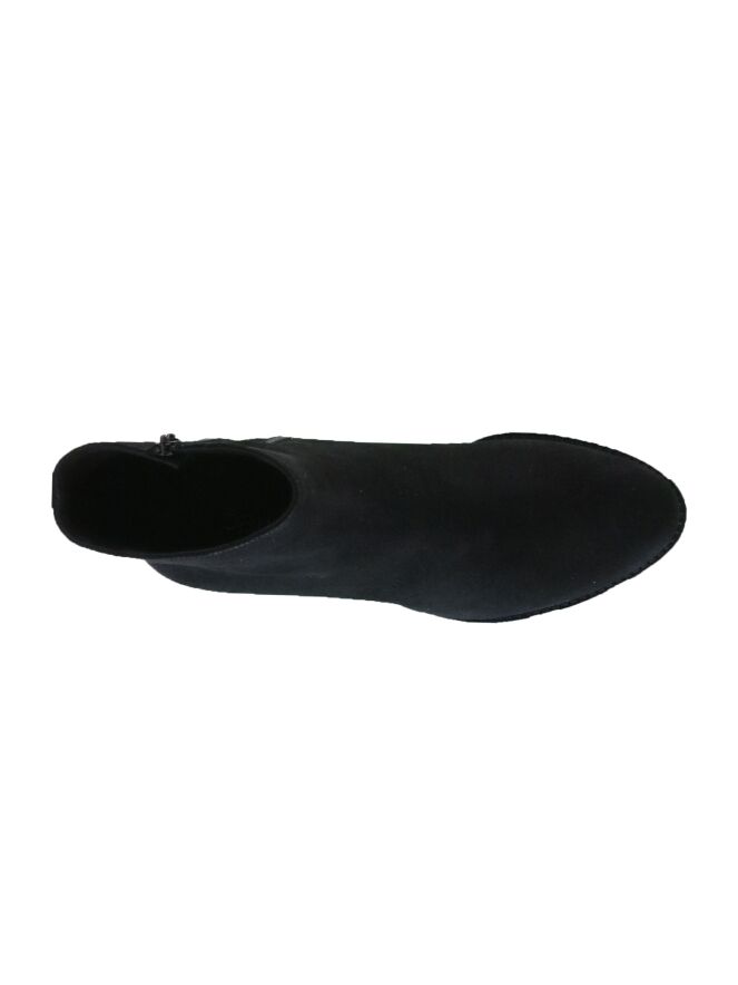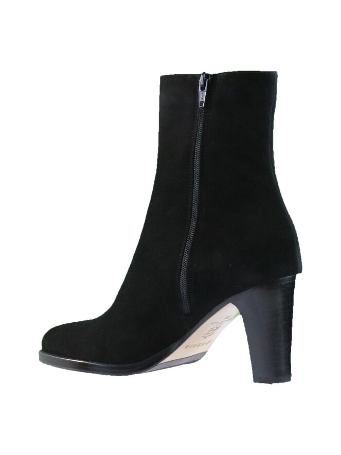 Een enkellaarsje van het merk Panara in de kleur zwart. Het laarsje heeft een ronde neus en de hak is in een neutrale zwarte kleur. De binnenkant van het laarsje is met leder gevoerd.
