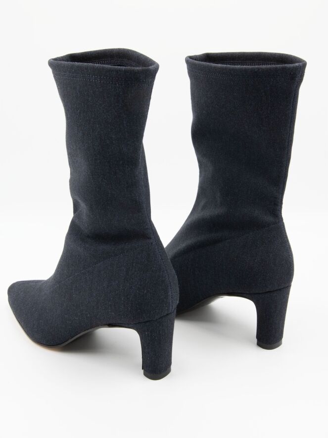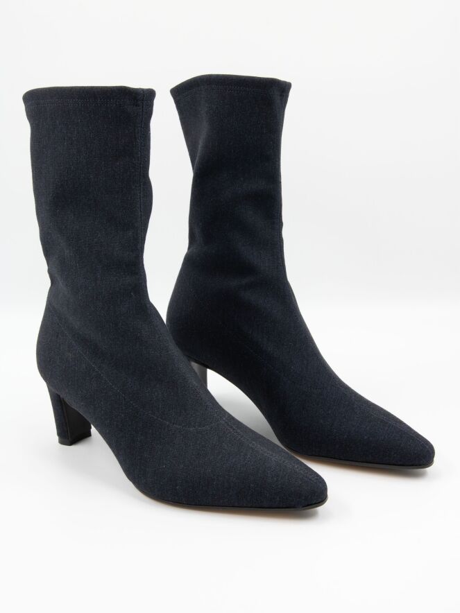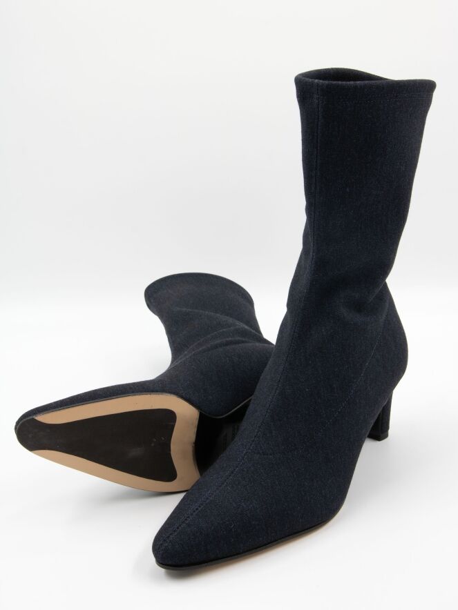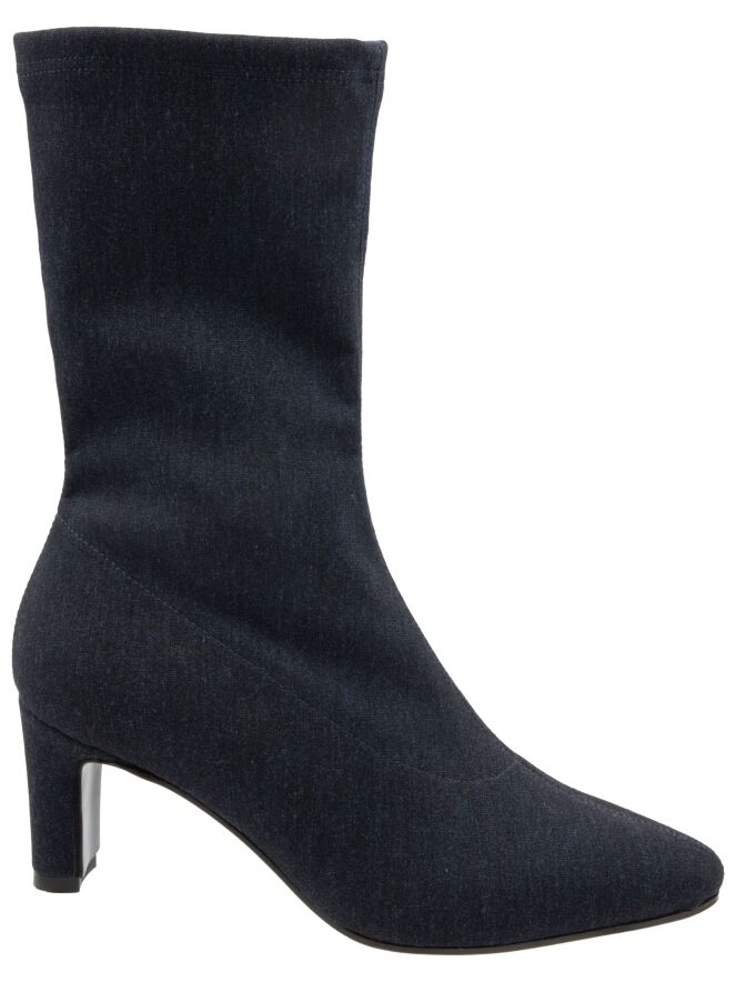 Een enkellaarsje van Panara in de kleur marineblauw. Het laarsje heeft een spitse neus en de schacht is elastisch.