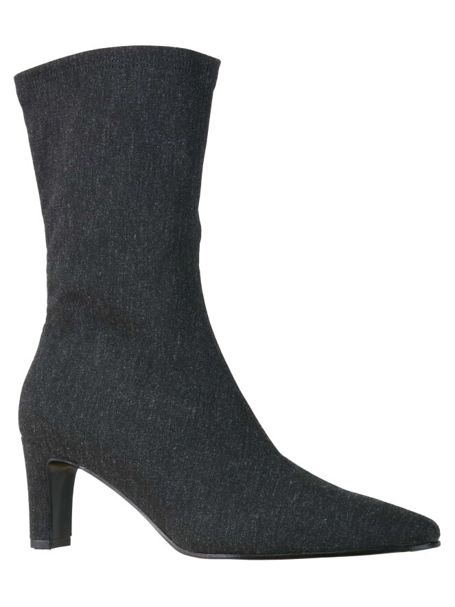Een enkellaarsje van Panara in de kleur antraciet. Het laarsje heeft een spitse neus en de schacht is elastisch.
